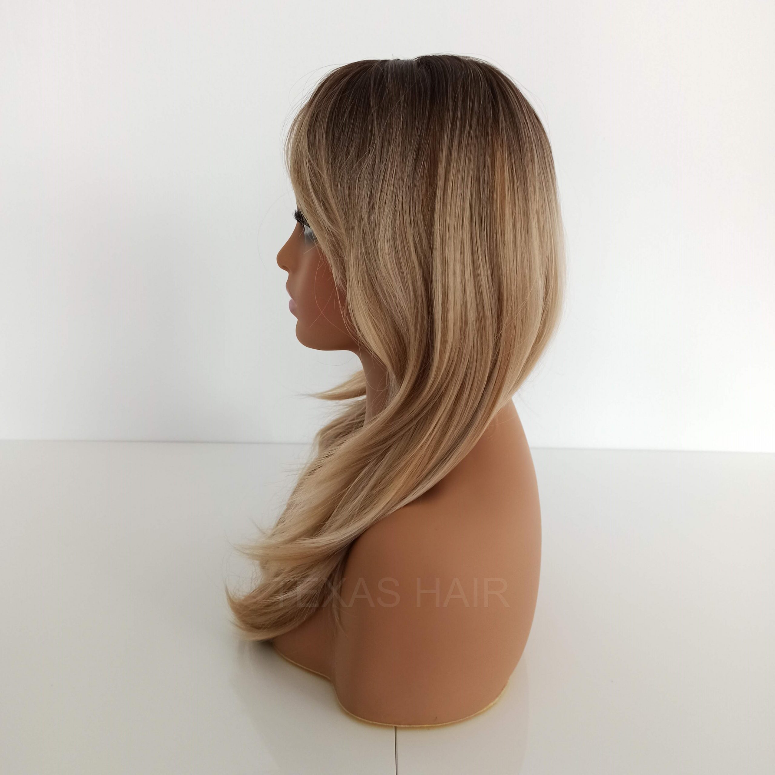 Modna peruka blond ombre z grzywką