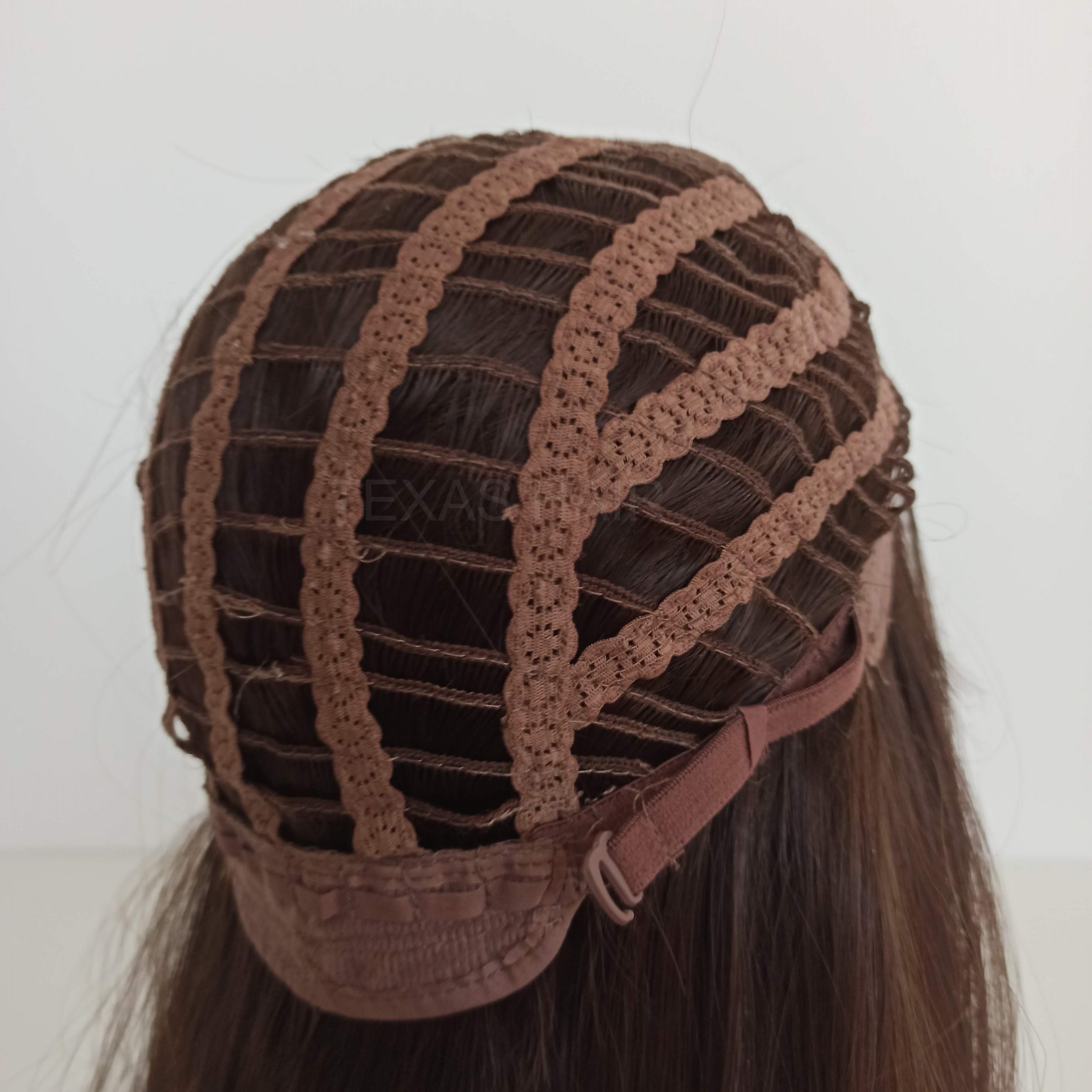 Peruka wykonana jest z nowoczesnego włókna Kanekalon, do złudzenia imitującego naturalny włos ludzki. Włosy z tego włókna są miękkie i miłe w dotyku. Włos utkany jest na przewiewnej siateczce zapewniającej stały dopływ powietrza do skóry głowy.