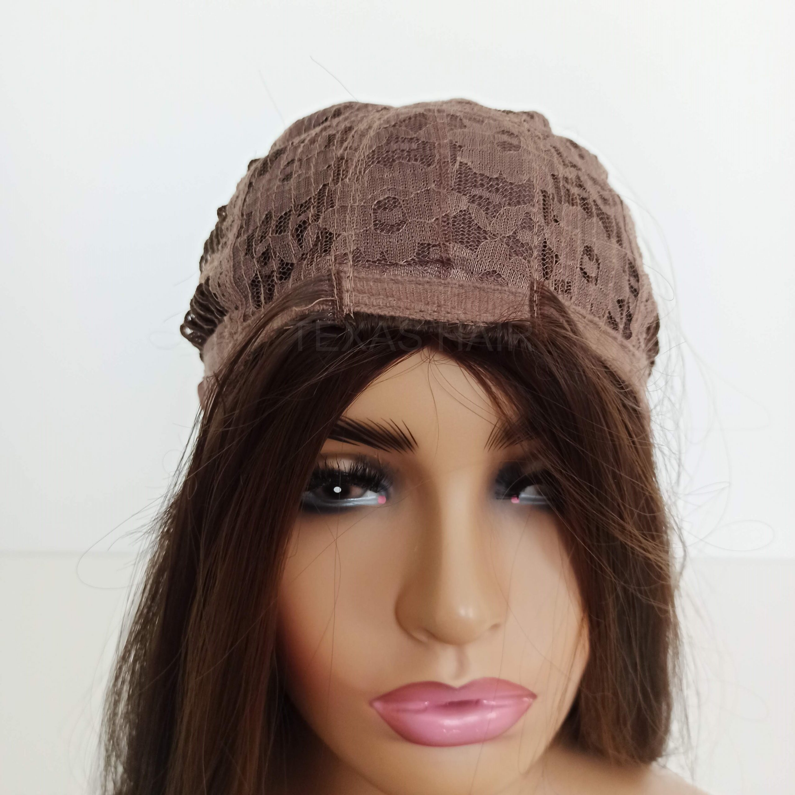 Oddychająca siatka znajdująca się pod peruką dobrze trzyma włosy, co umożliwia swobodne mocowanie peruki. Natomiast z tyłu ma ściągacz do regulacji według obwodu głowy, co sprawia, że peruka jest idealna dla każdej osoby.