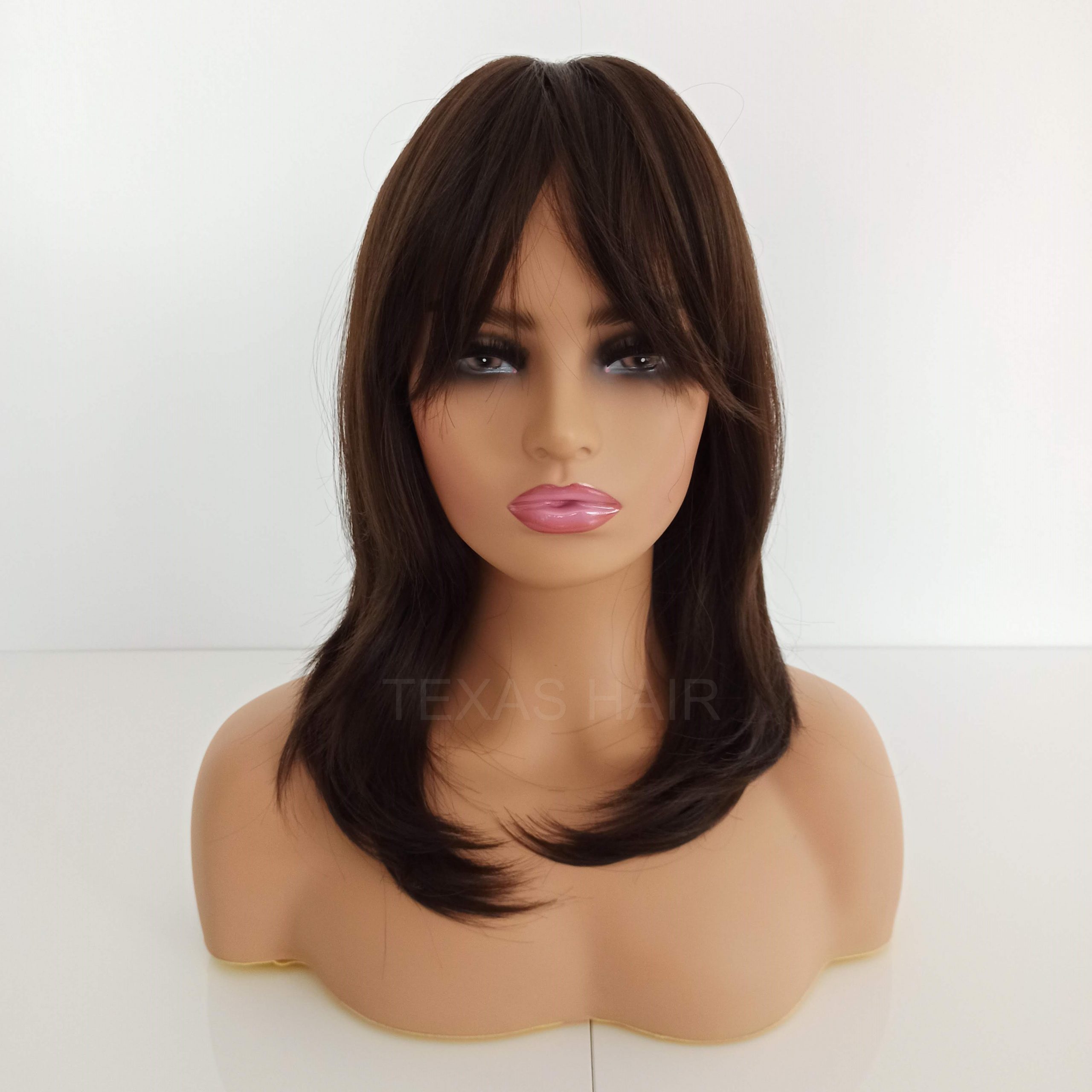 Peruka brąz z grzywką + czepek GRATIS!