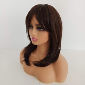 Modna peruka brąz z grzywką