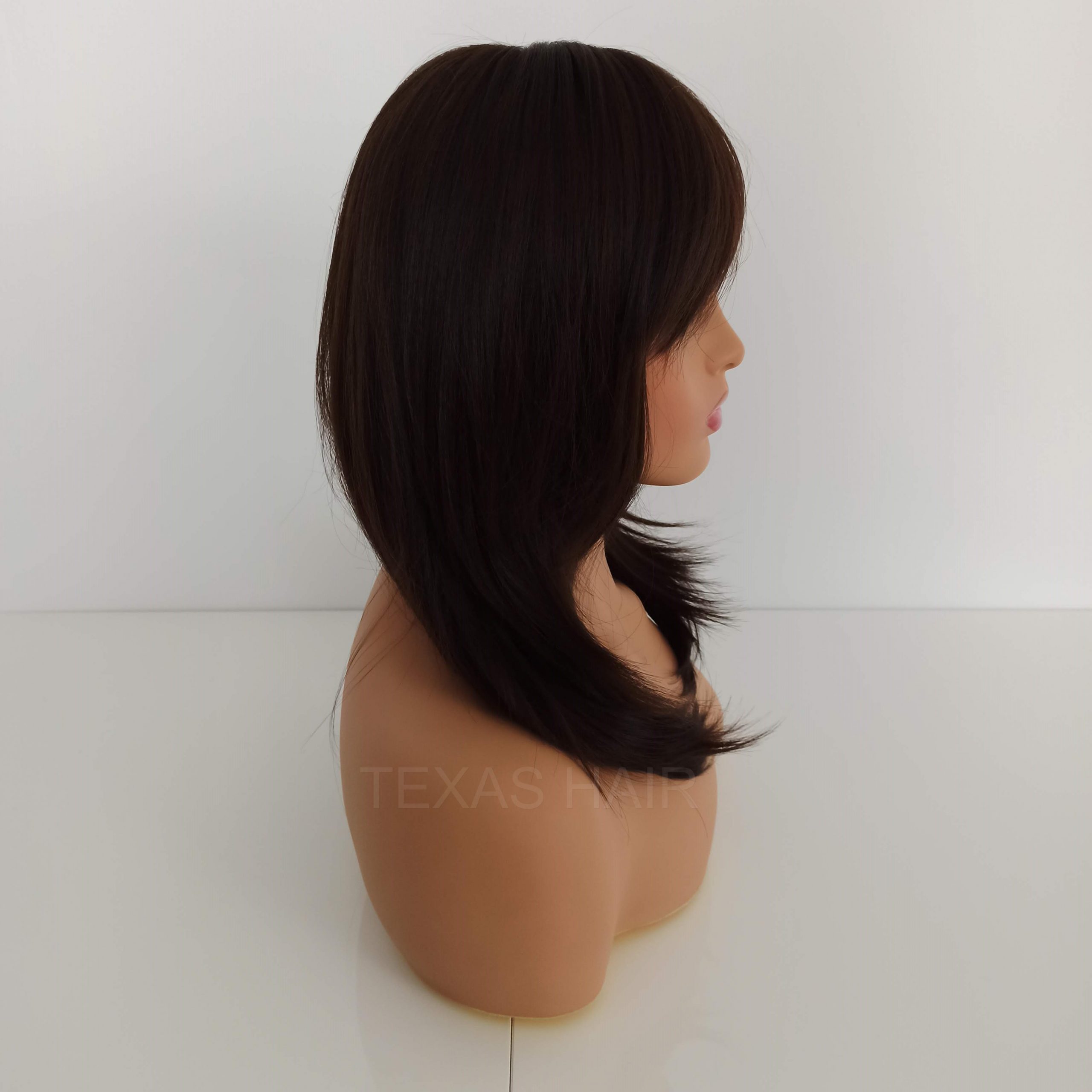 Peruka wykonana jest z nowoczesnego włókna Kanekalon, do złudzenia imitującego naturalny włos ludzki. Włosy z tego włókna są miękkie i miłe w dotyku. Włos utkany jest na przewiewnej siateczce zapewniającej stały dopływ powietrza do skóry głowy.