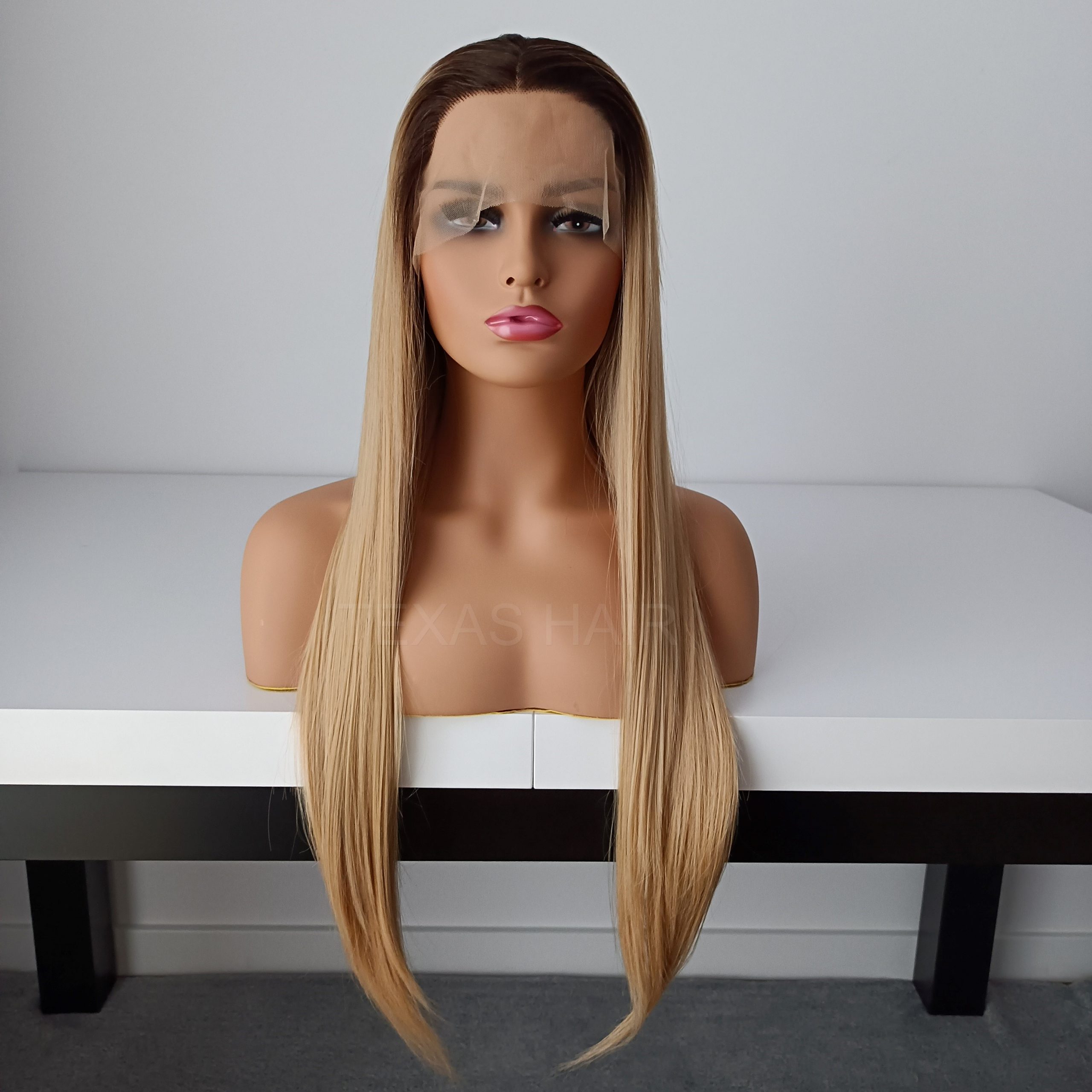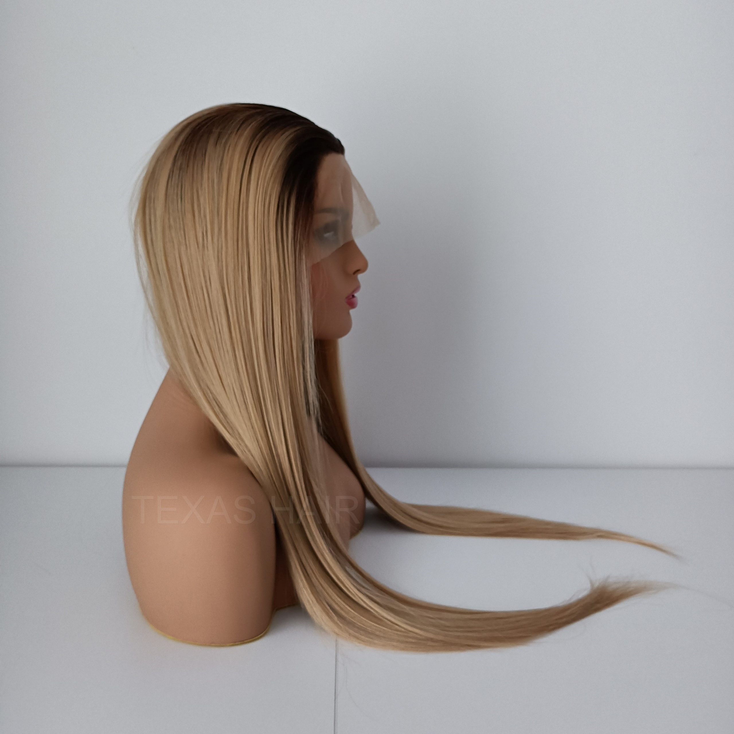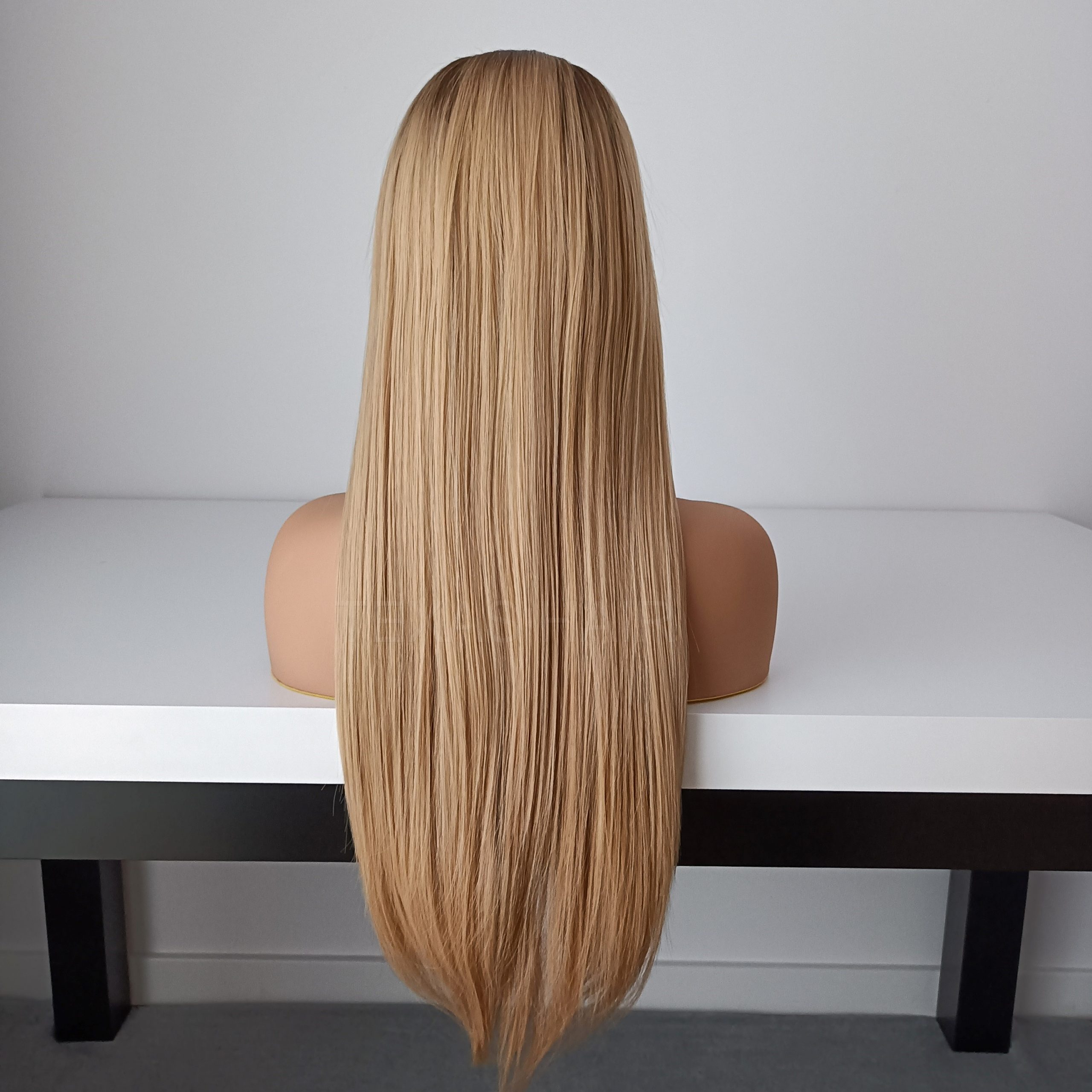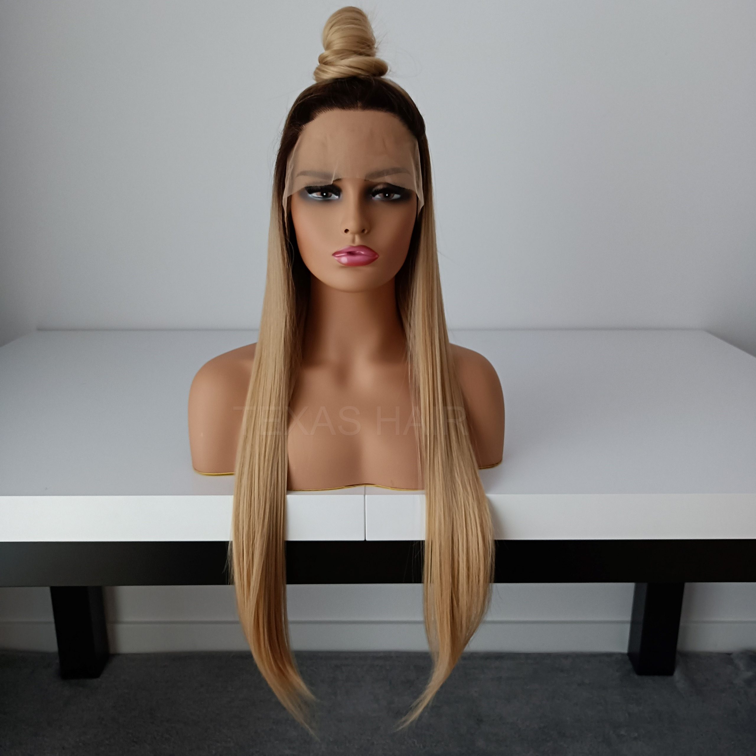 Peruka Lace Front w kolorze blond z ciemnym odrostem