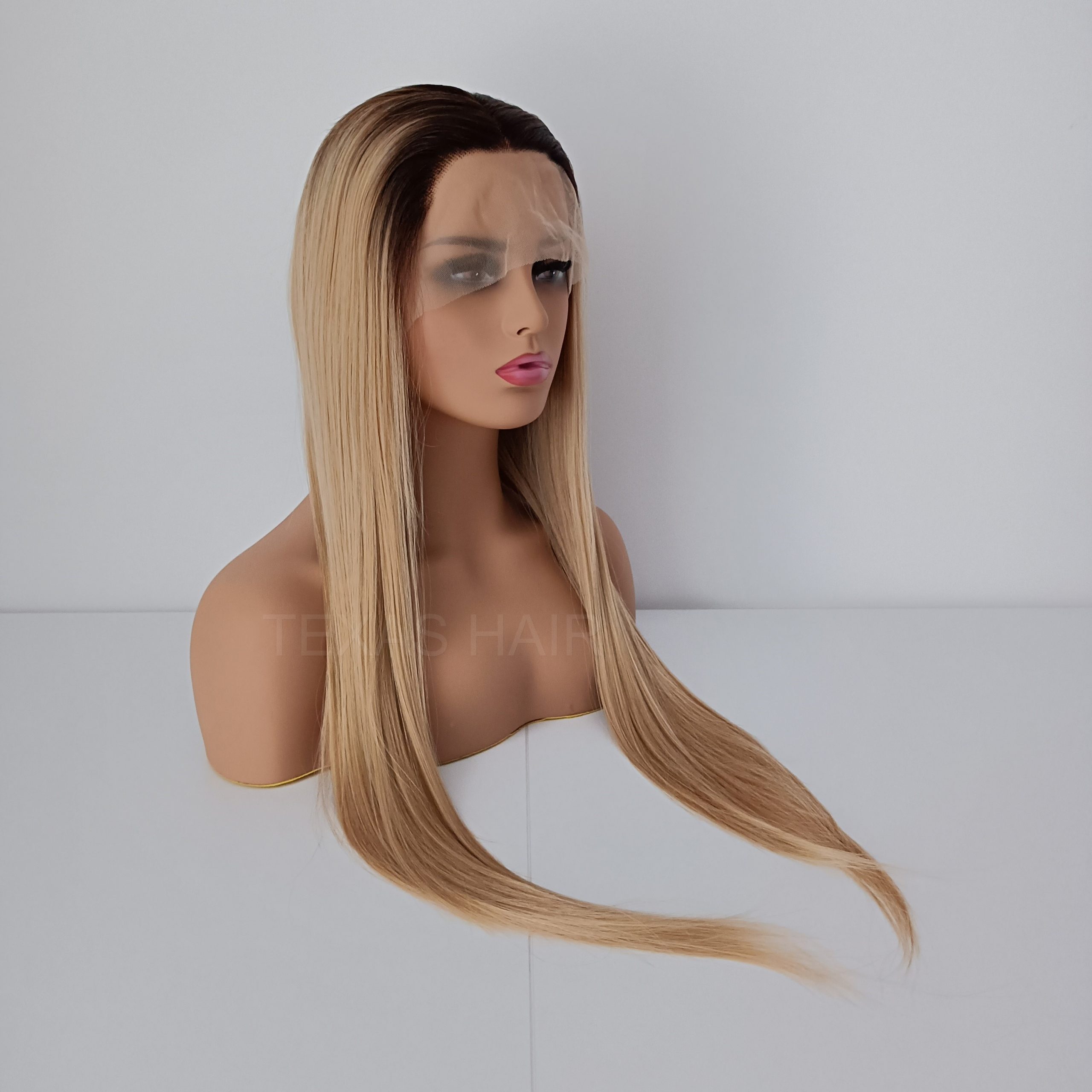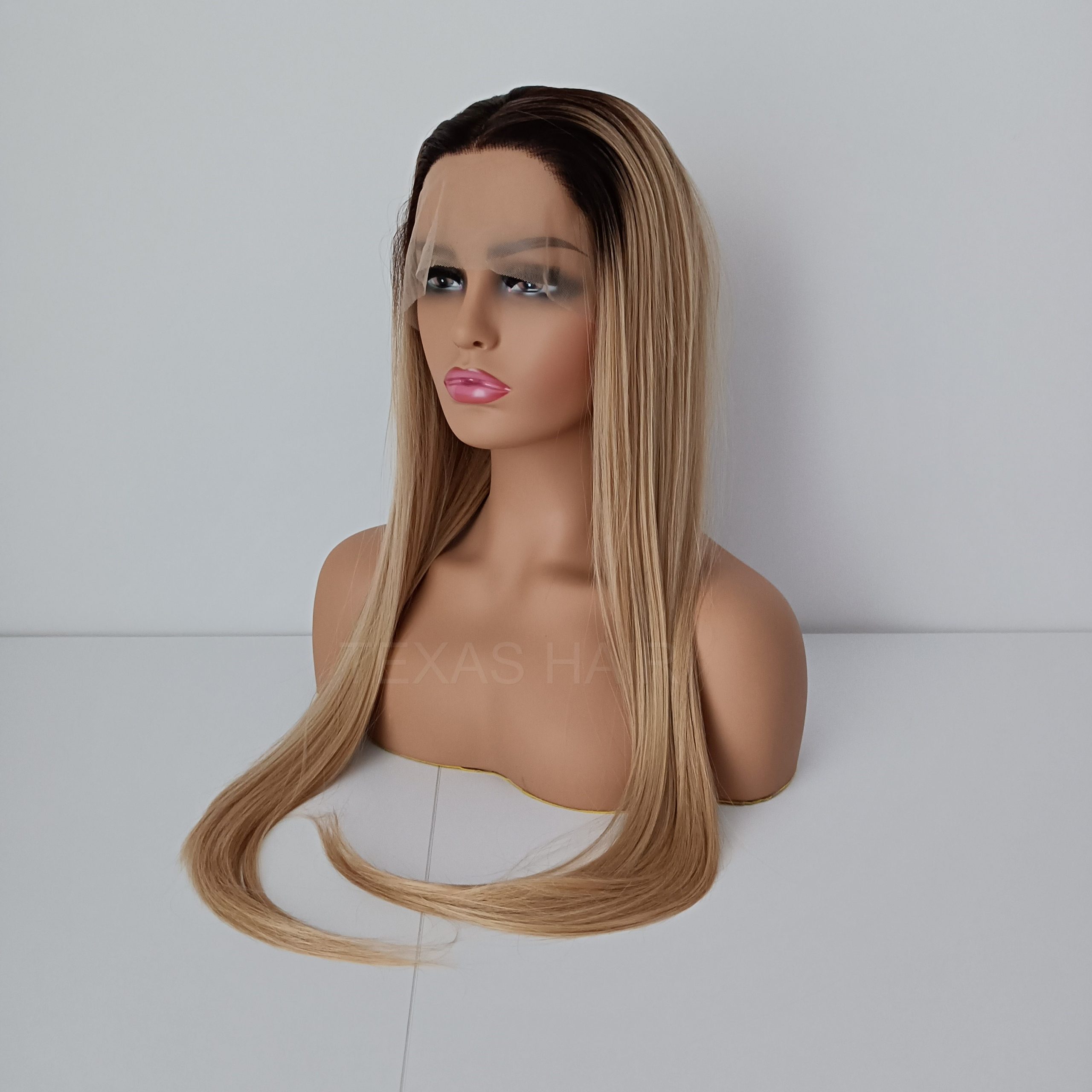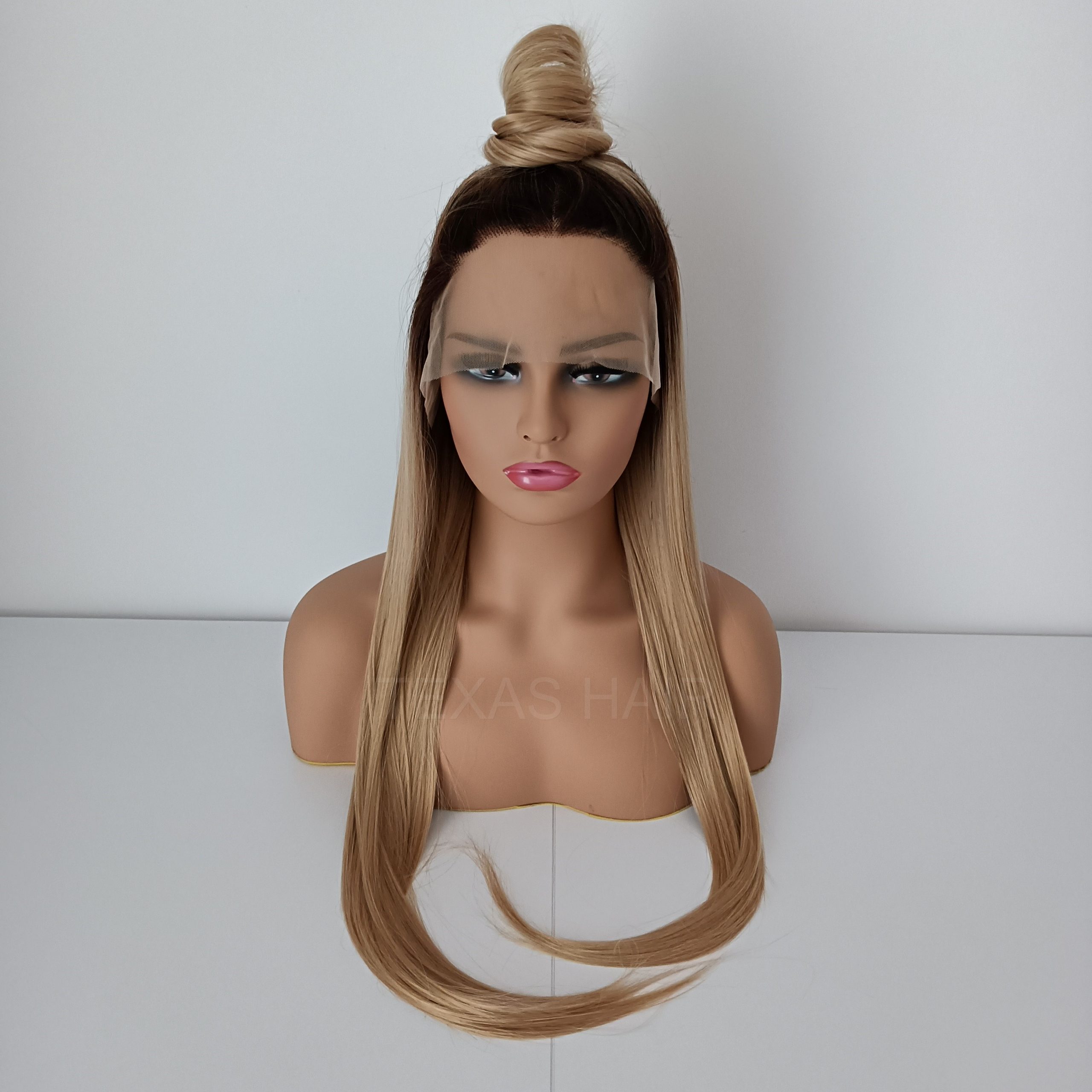 Peruka Lace Front w kolorze blond z ciemnym odrostem
