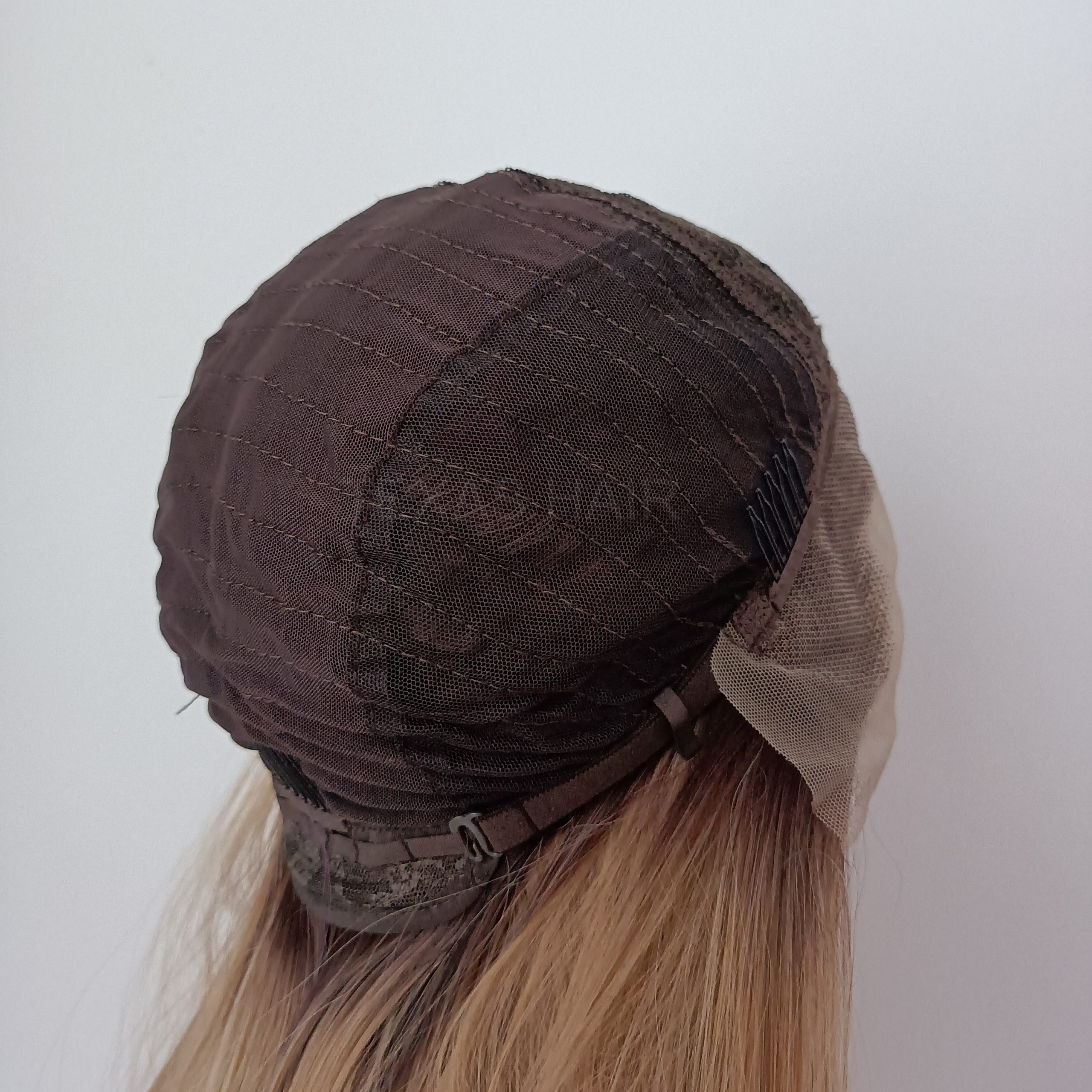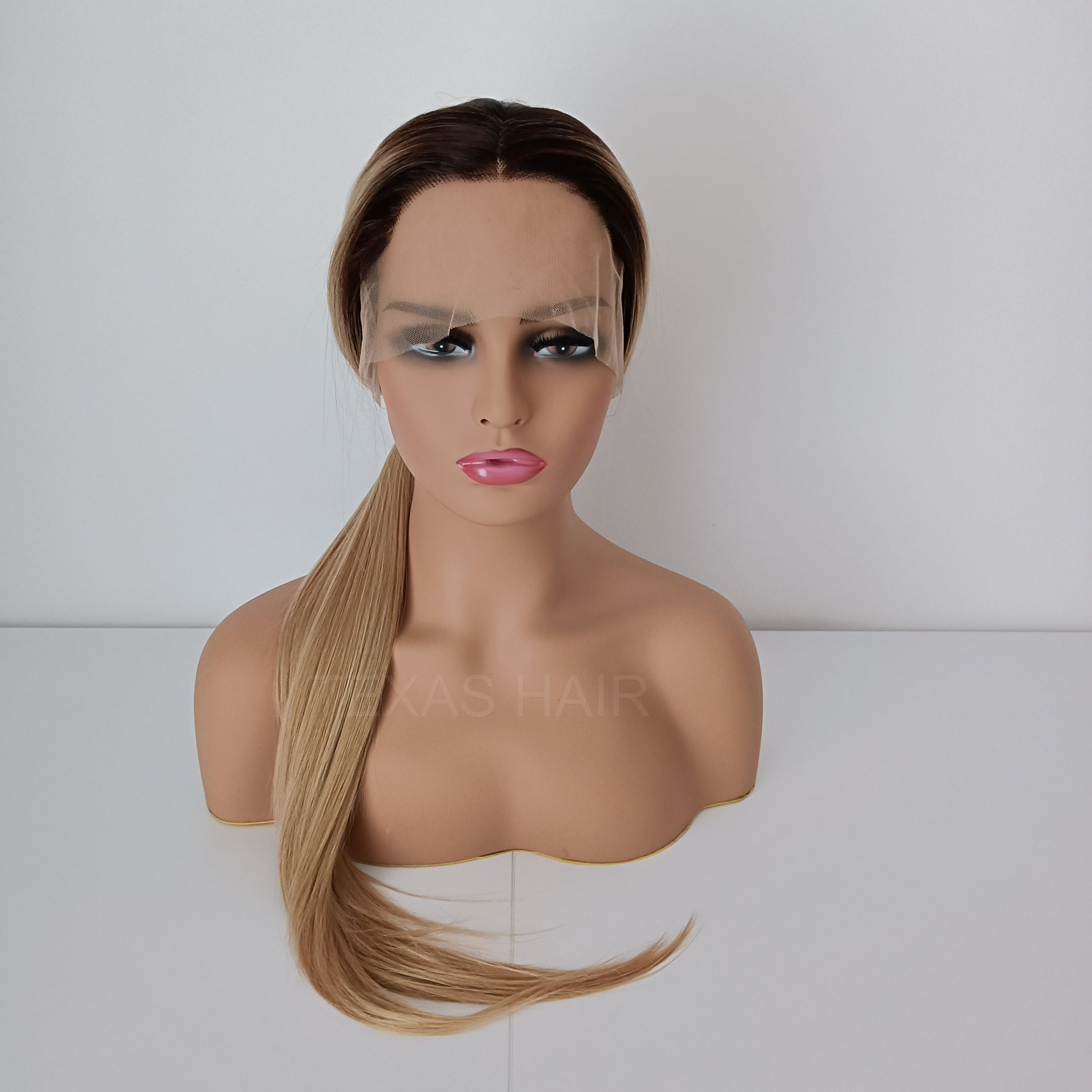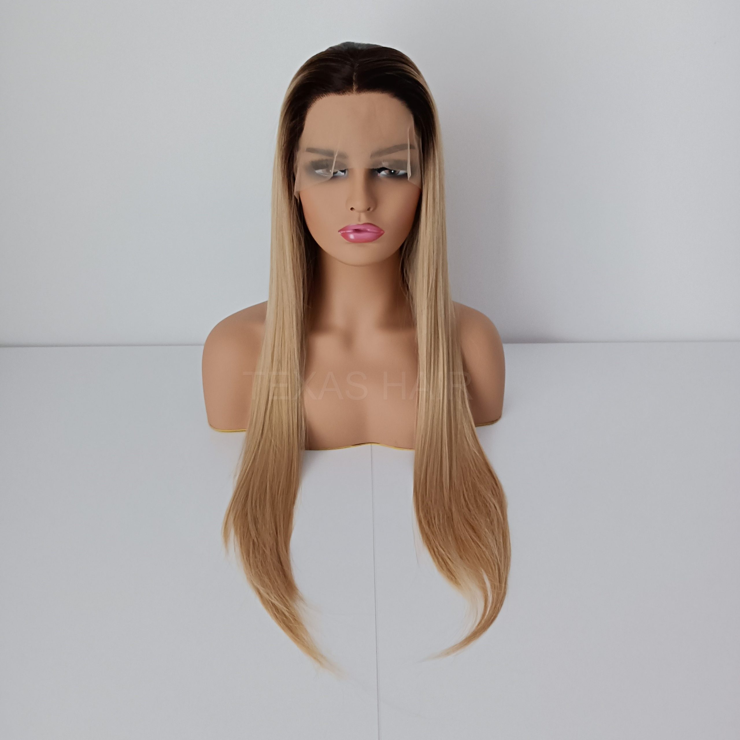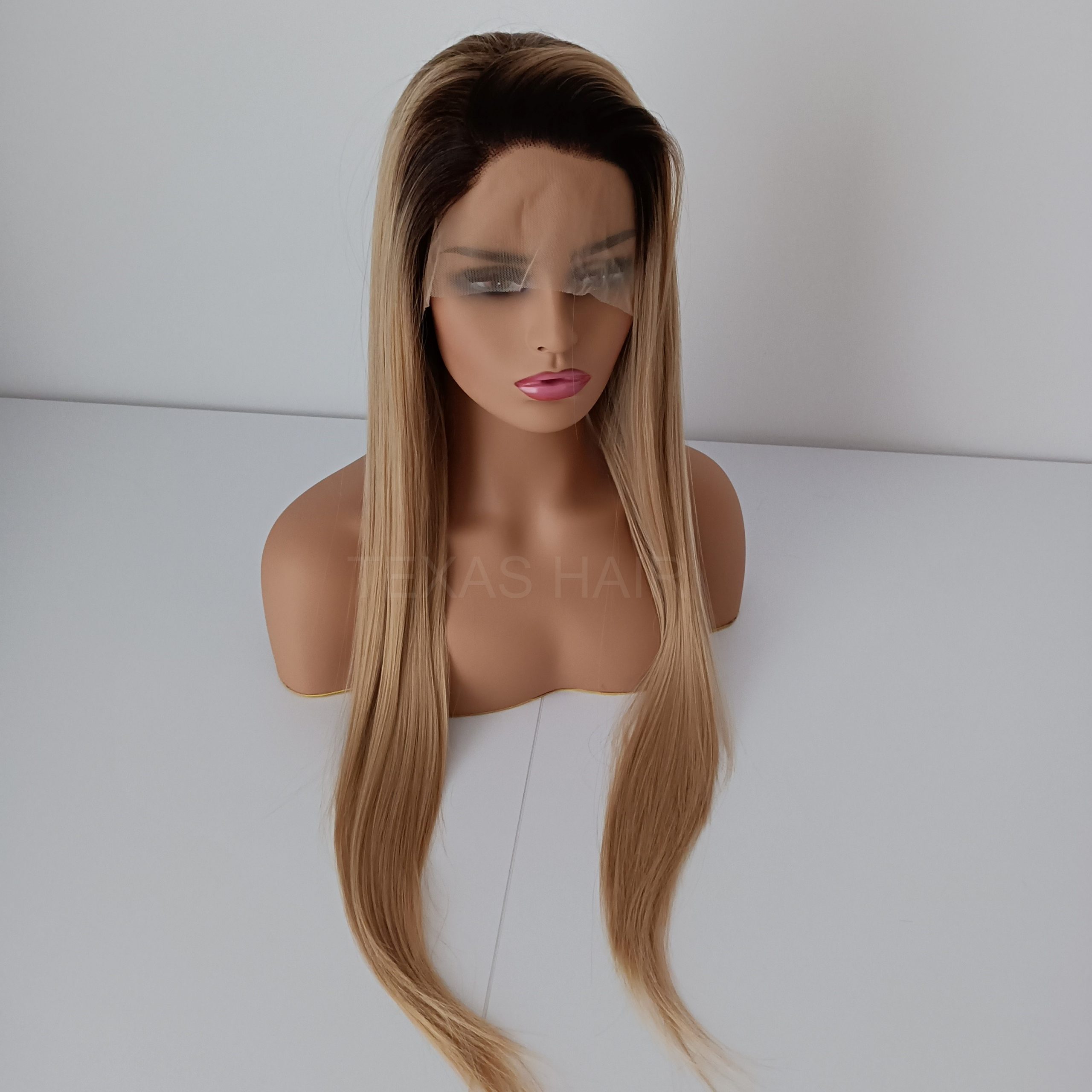 Peruka Lace Front w kolorze blond z ciemnym odrostem