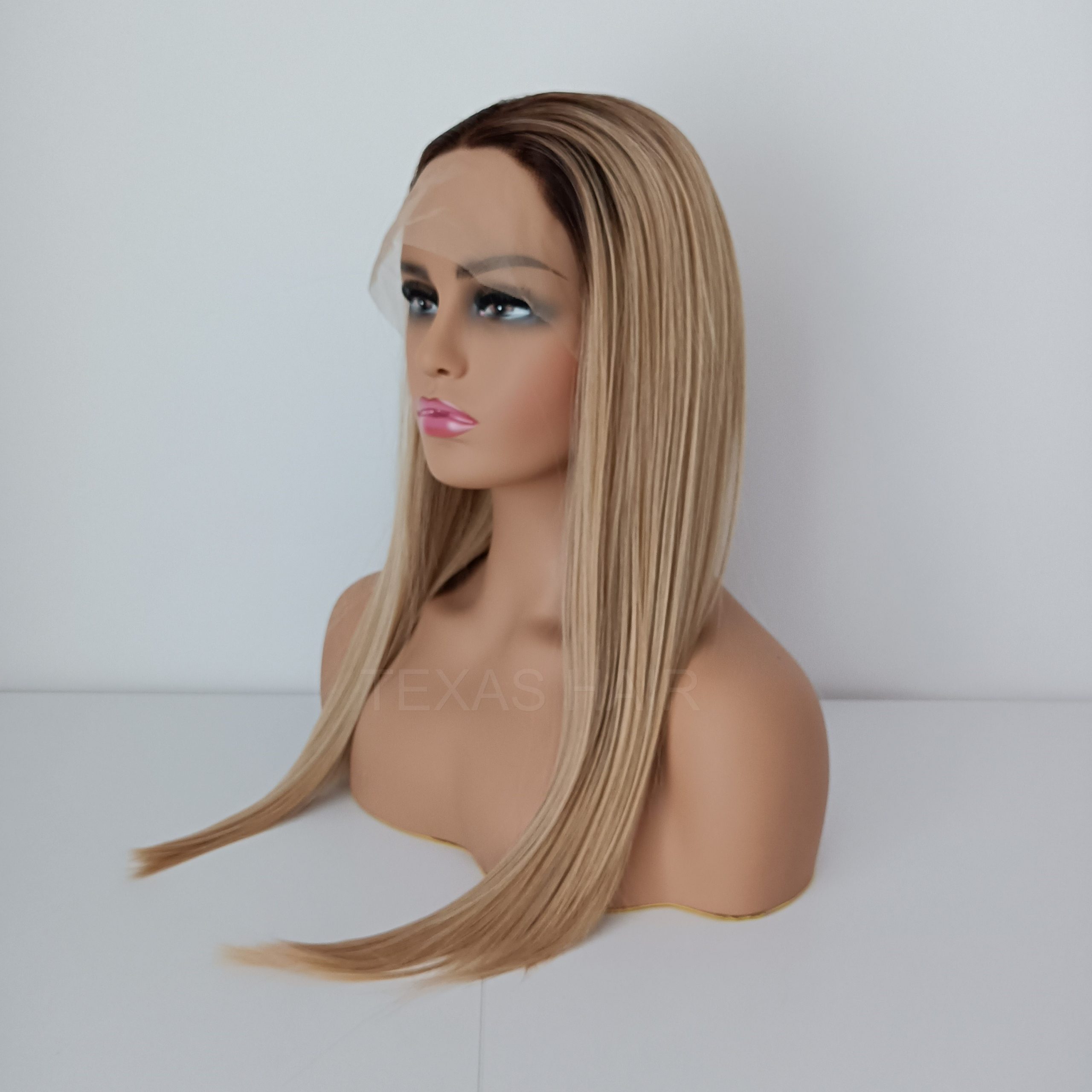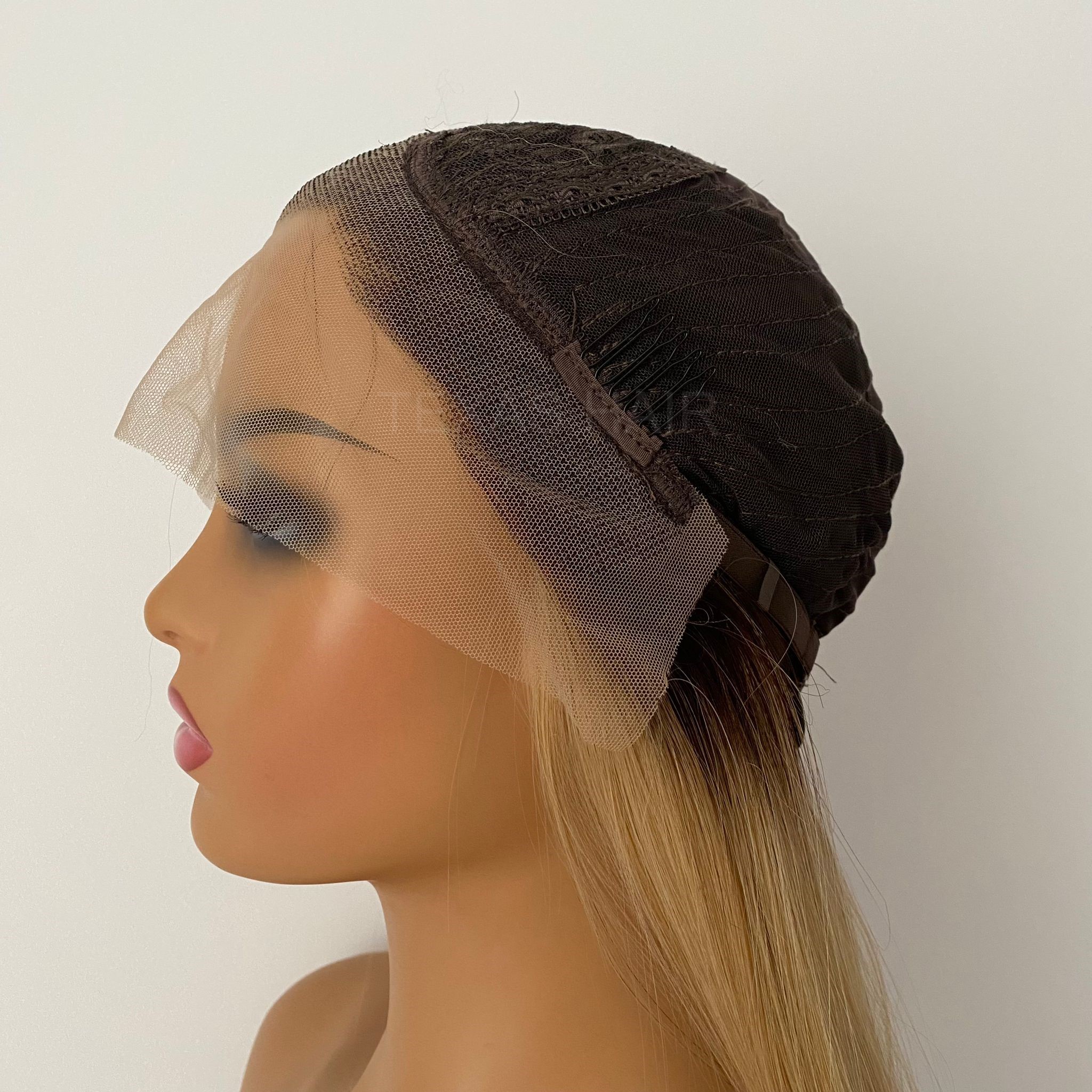 Peruka LACE FRONT imituje efekt „naturalnego czoła”. Posiada z przodu w delikatną, lekko elastyczną siateczkę (french lace) zlewającą się optycznie ze skórą. Przy samym brzegu utkane są małe, rzadsze włoski stopniowo przechodzące w gęstsze i dłuższe włosy. Technologia ta ma za zadanie oddać jak najbardziej realny wygląd samego brzegu peruki, umożliwiający odkrycie czoła.