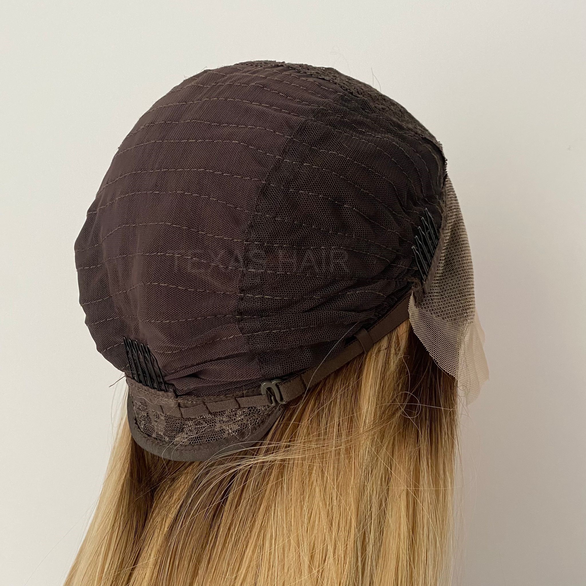 Wewnątrz peruki przymocowany jest pasek umożliwiający regulację obwodu, dzięki czemu peruka idealnie dopasowuje się do każdej głowy. Posiada również wsuwki umożliwiające spasowanie peruki z swoimi włosami.