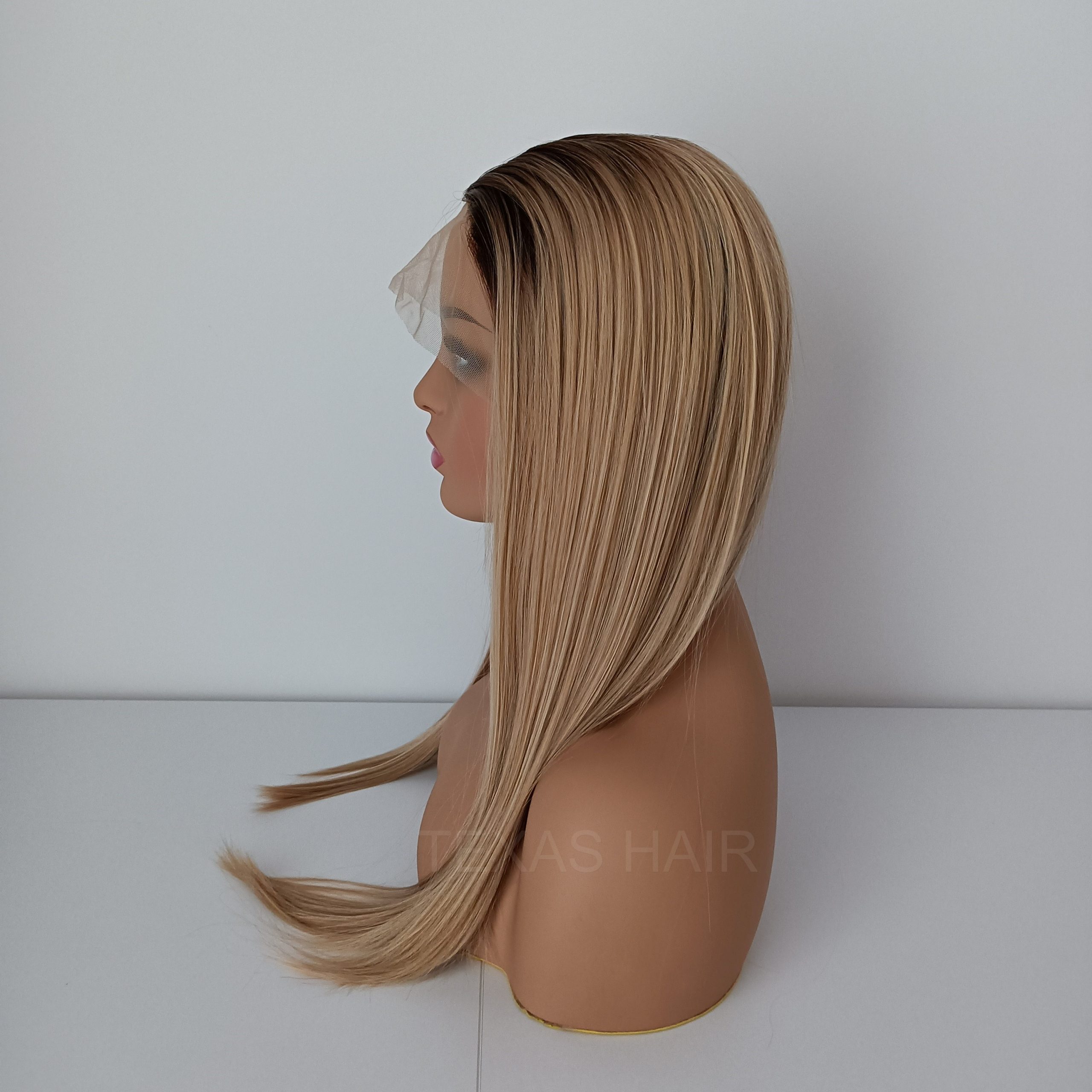 Peruka wykonana jest z nowoczesnego włókna Kanekalon, do złudzenia imitującego naturalny włos ludzki. Włosy z tego włókna są miękkie i miłe w dotyku. Włos utkany jest na przewiewnej siateczce zapewniającej stały dopływ powietrza do skóry głowy.