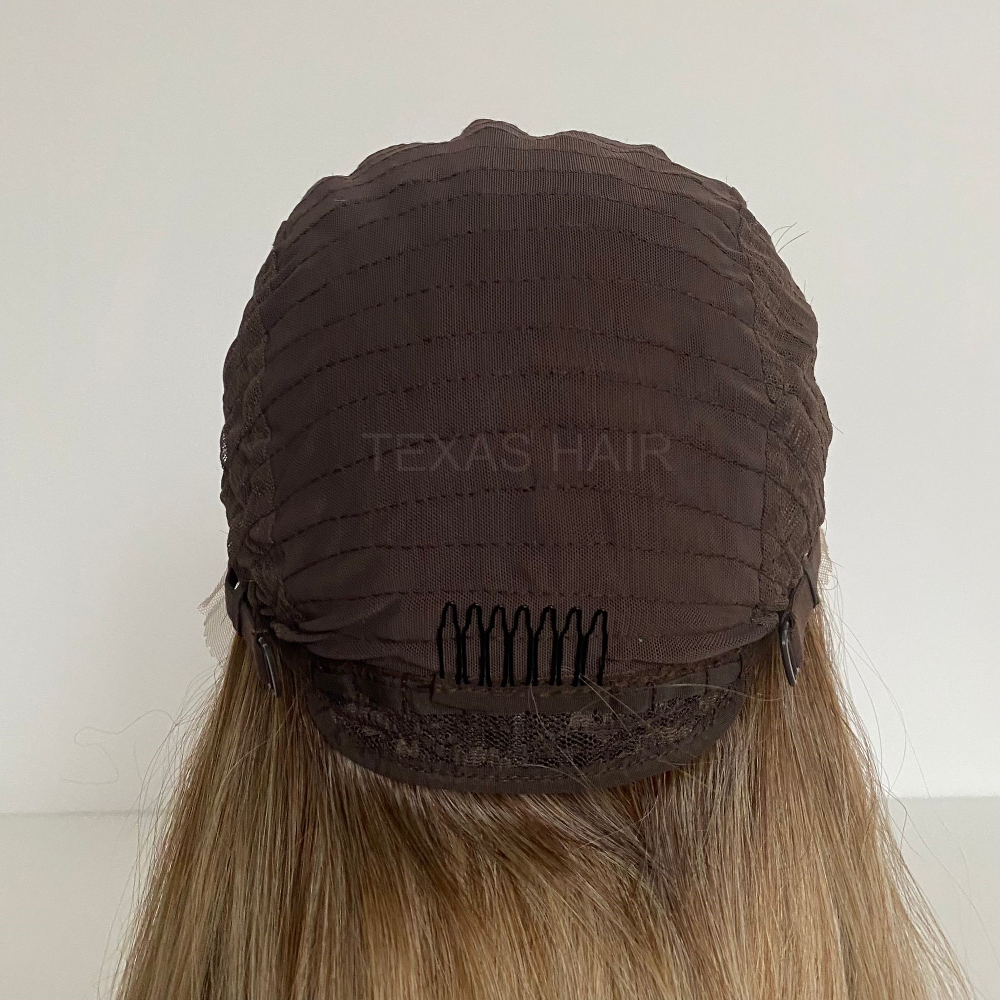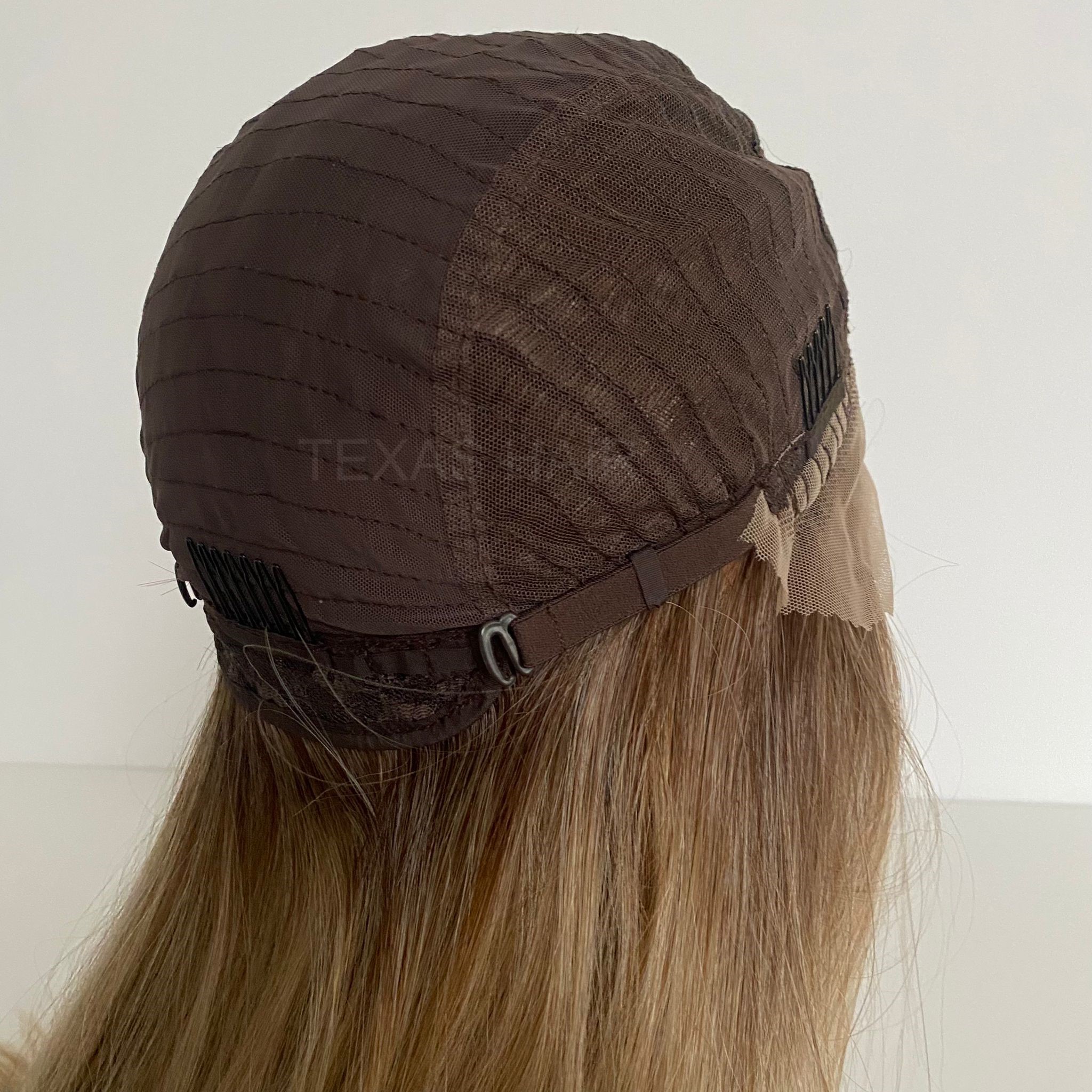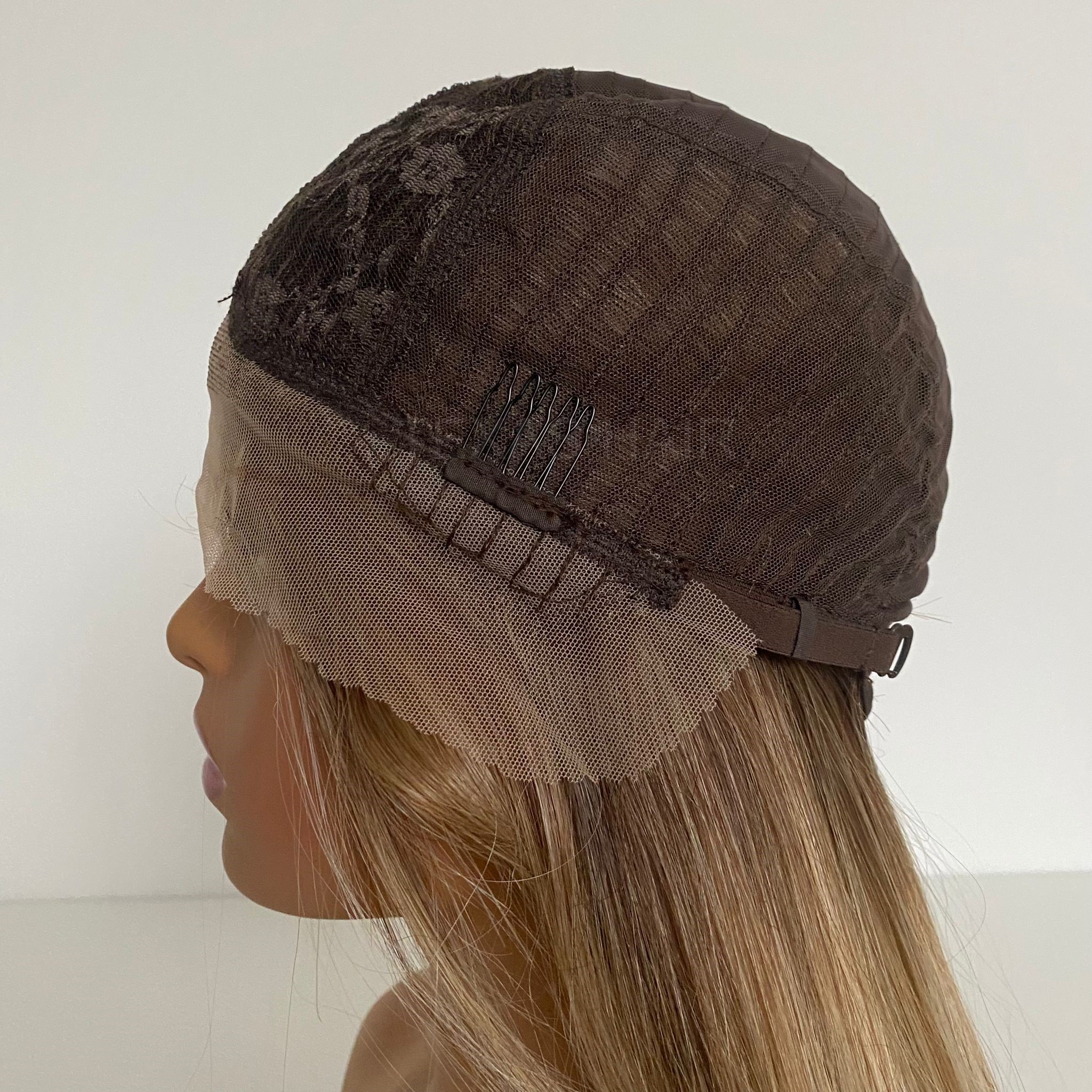 Wewnątrz peruki przymocowany jest pasek umożliwiający regulację obwodu, dzięki czemu peruka idealnie dopasowuje się do każdej głowy. Posiada również wsuwki umożliwiające spasowanie peruki z swoimi włosami.