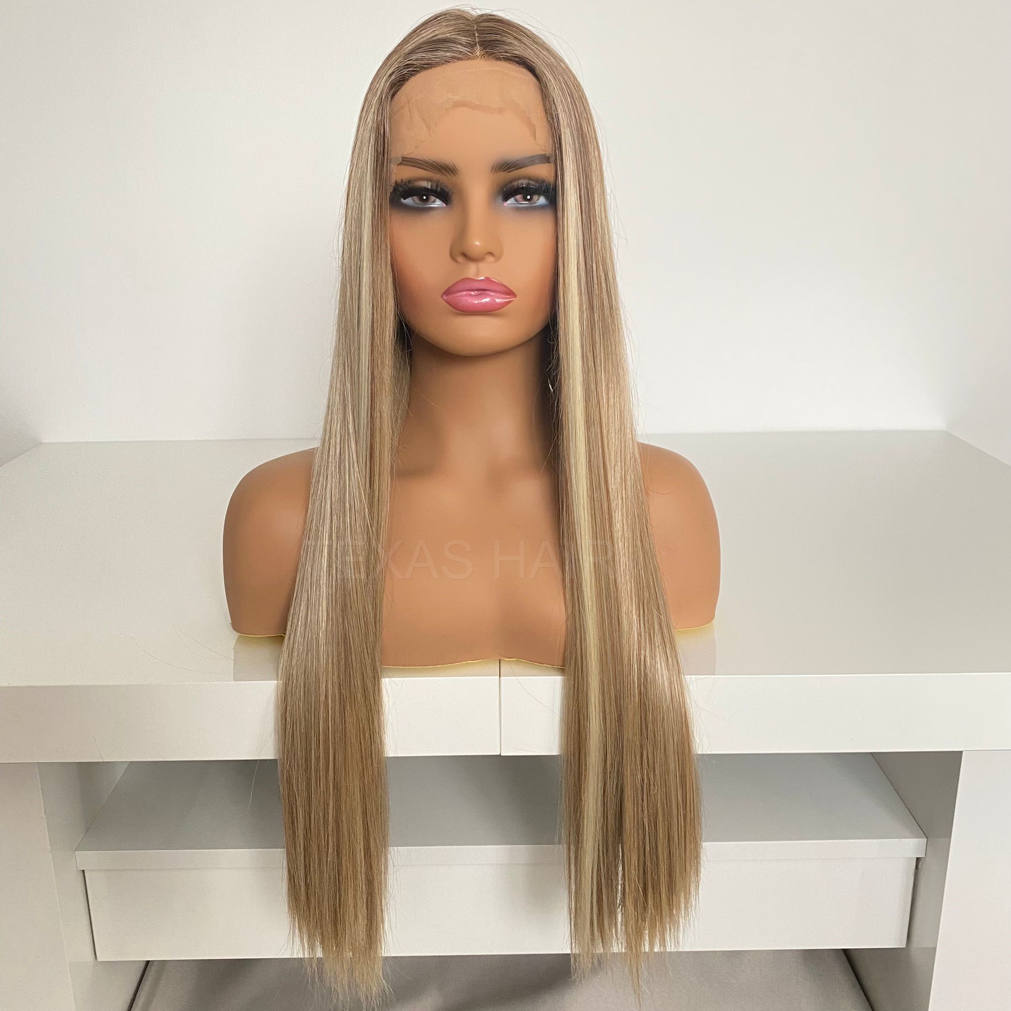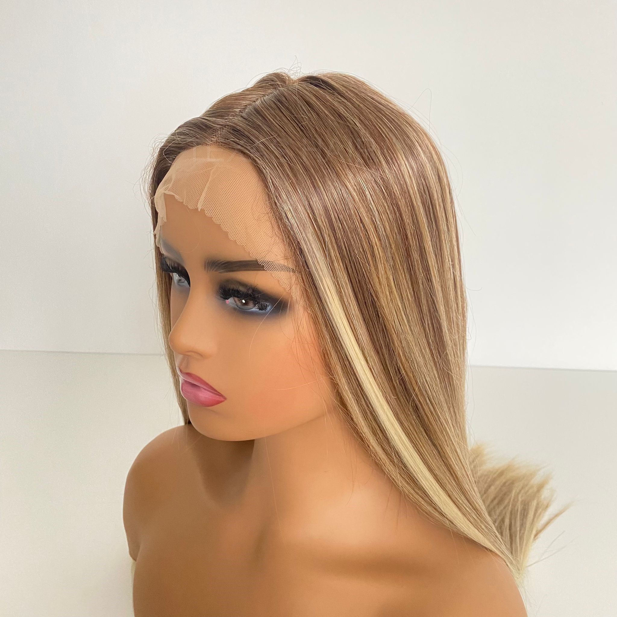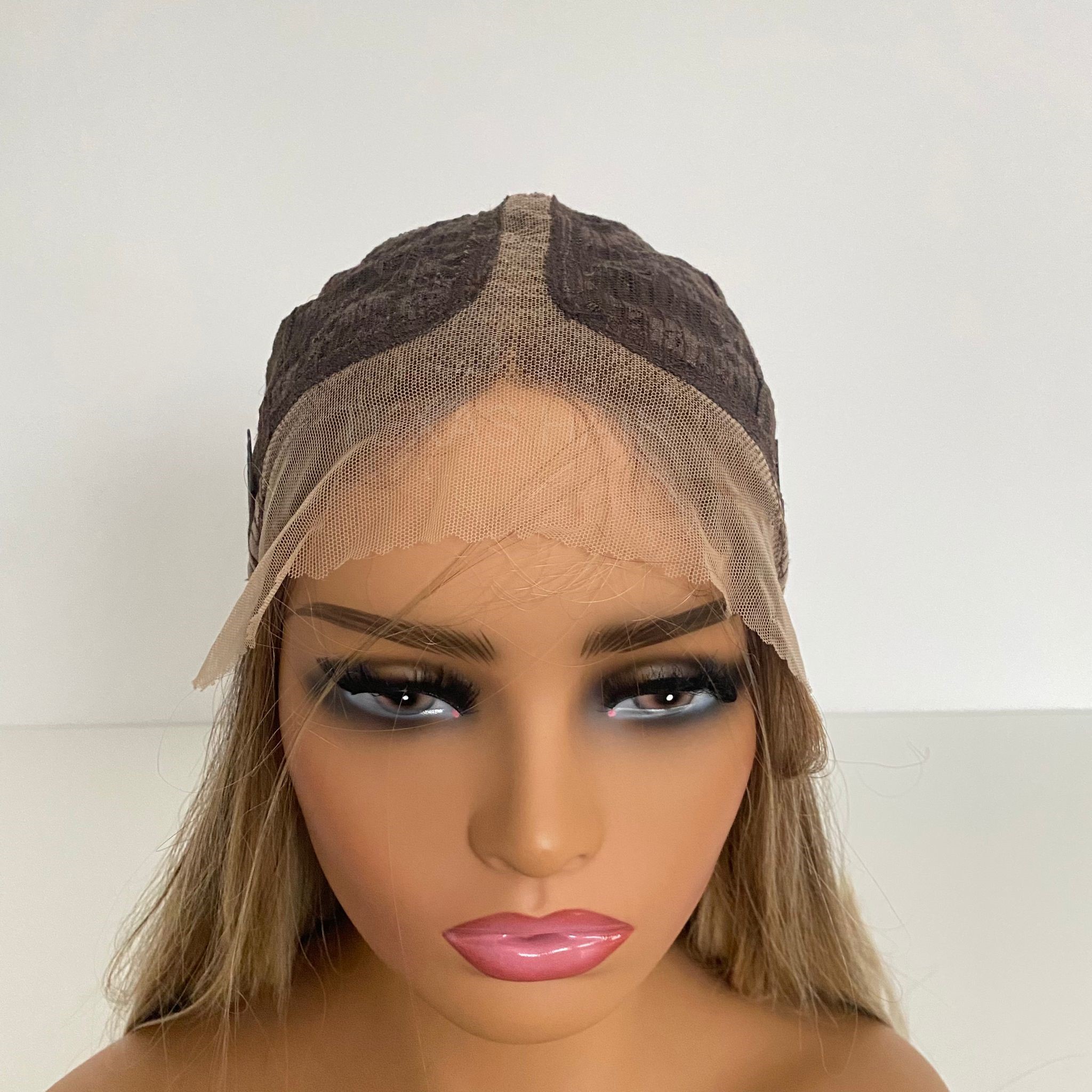 Peruka LACE FRONT imituje efekt „naturalnego czoła”. Posiada z przodu w delikatną, lekko elastyczną siateczkę (french lace) zlewającą się optycznie ze skórą. Przy samym brzegu utkane są małe, rzadsze włoski stopniowo przechodzące w gęstsze i dłuższe włosy. Technologia ta ma za zadanie oddać jak najbardziej realny wygląd samego brzegu peruki, umożliwiający odkrycie czoła.