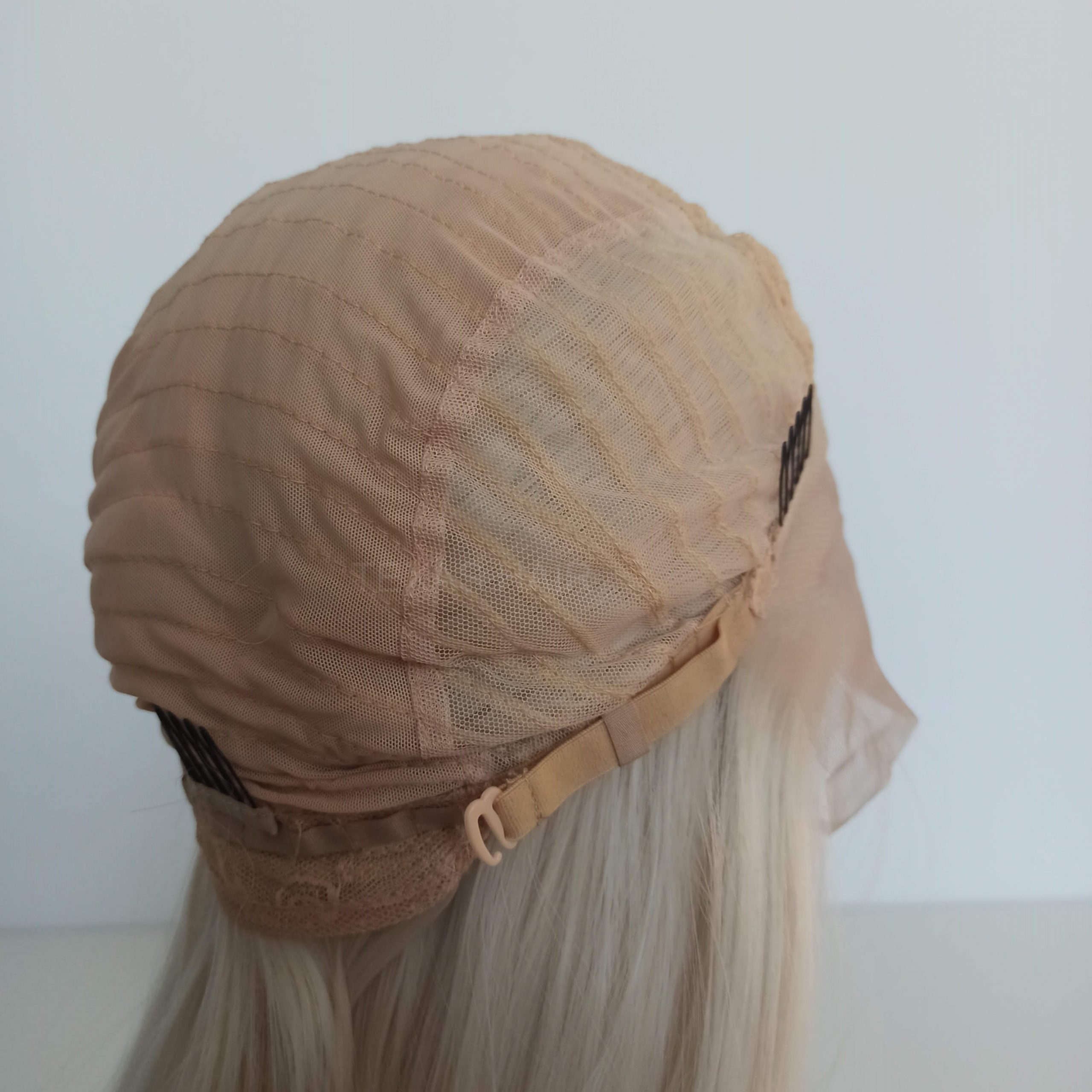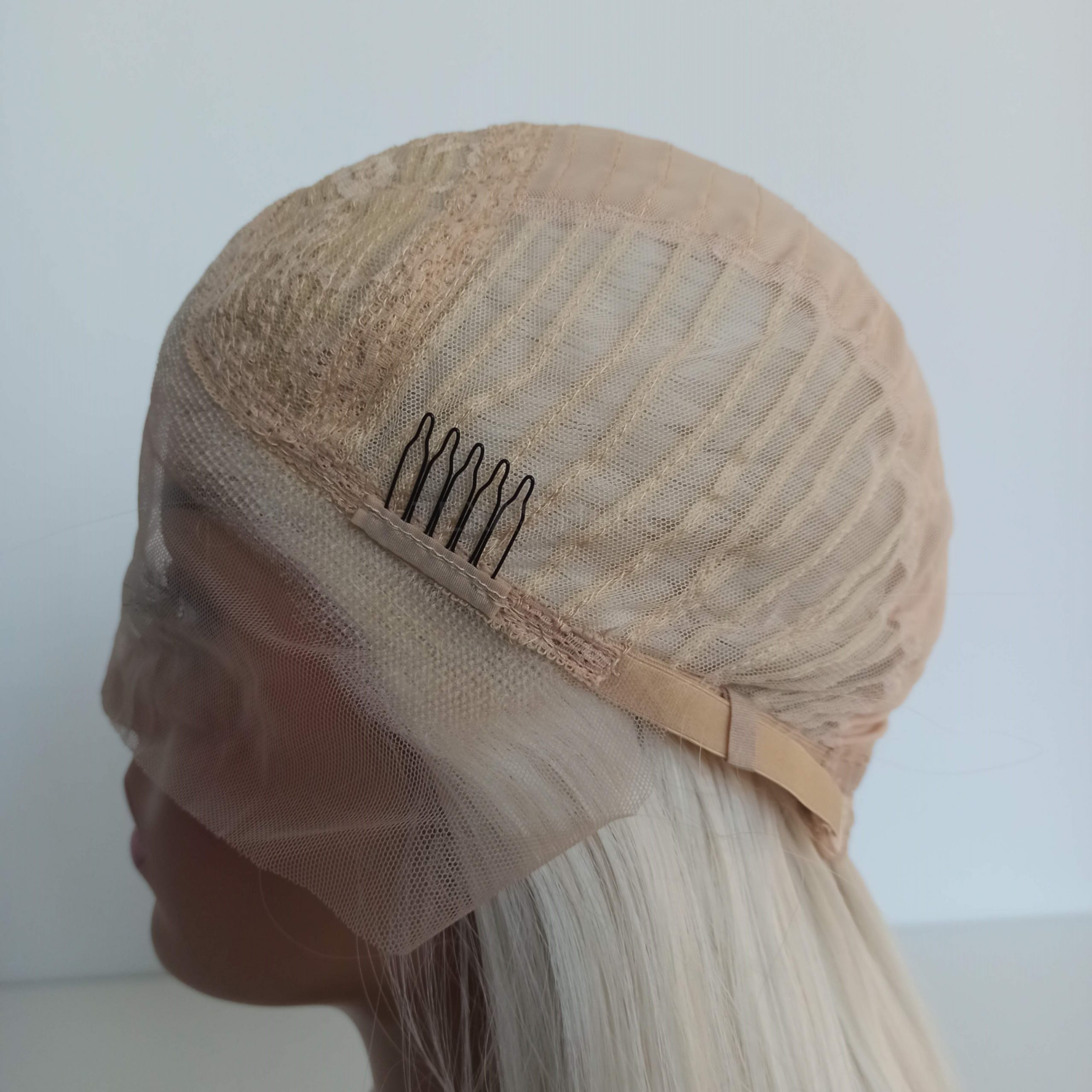 Wewnątrz peruki przymocowany jest pasek umożliwiający regulację obwodu, dzięki czemu peruka idealnie dopasowuje się do każdej głowy. Posiada również wsuwki umożliwiające spasowanie peruki z swoimi włosami.