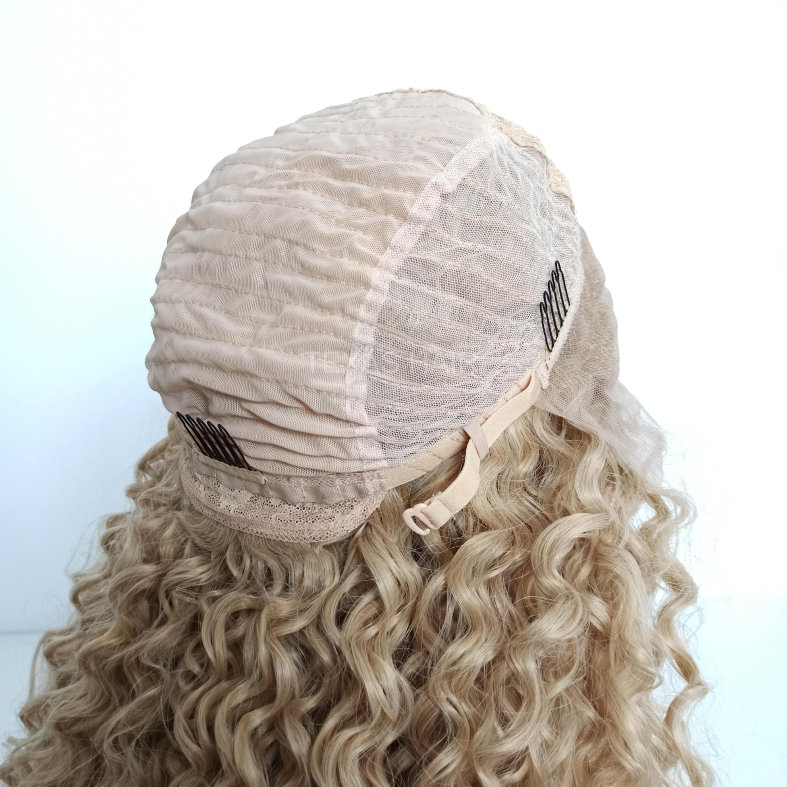 Wewnątrz peruki przymocowany jest pasek umożliwiający regulację obwodu, dzięki czemu peruka idealnie dopasowuje się do każdej głowy. Posiada również wsuwki umożliwiające spasowanie peruki z swoimi włosami.