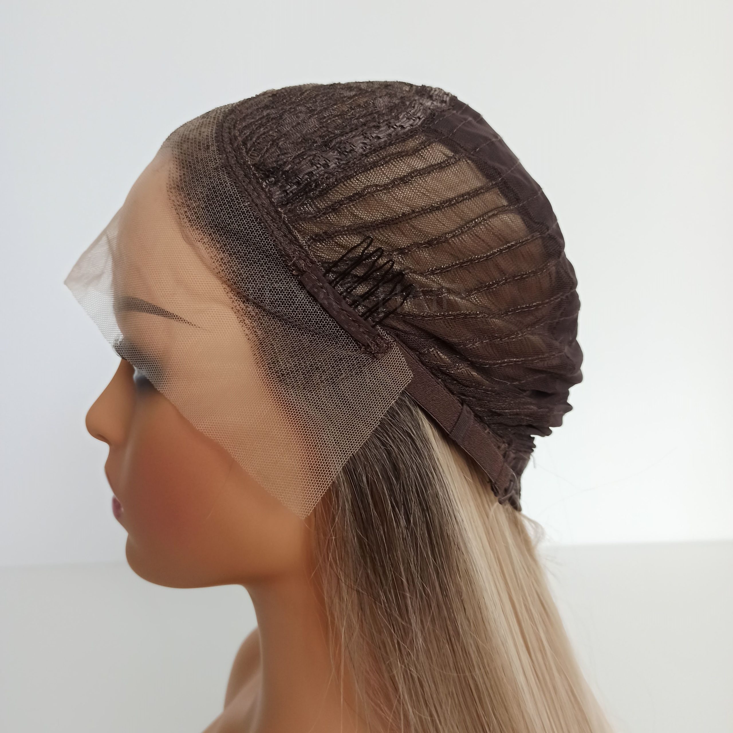 Wewnątrz peruki przymocowany jest pasek umożliwiający regulację obwodu, dzięki czemu peruka idealnie dopasowuje się do każdej głowy. Posiada również wsuwki umożliwiające spasowanie peruki z swoimi włosami.