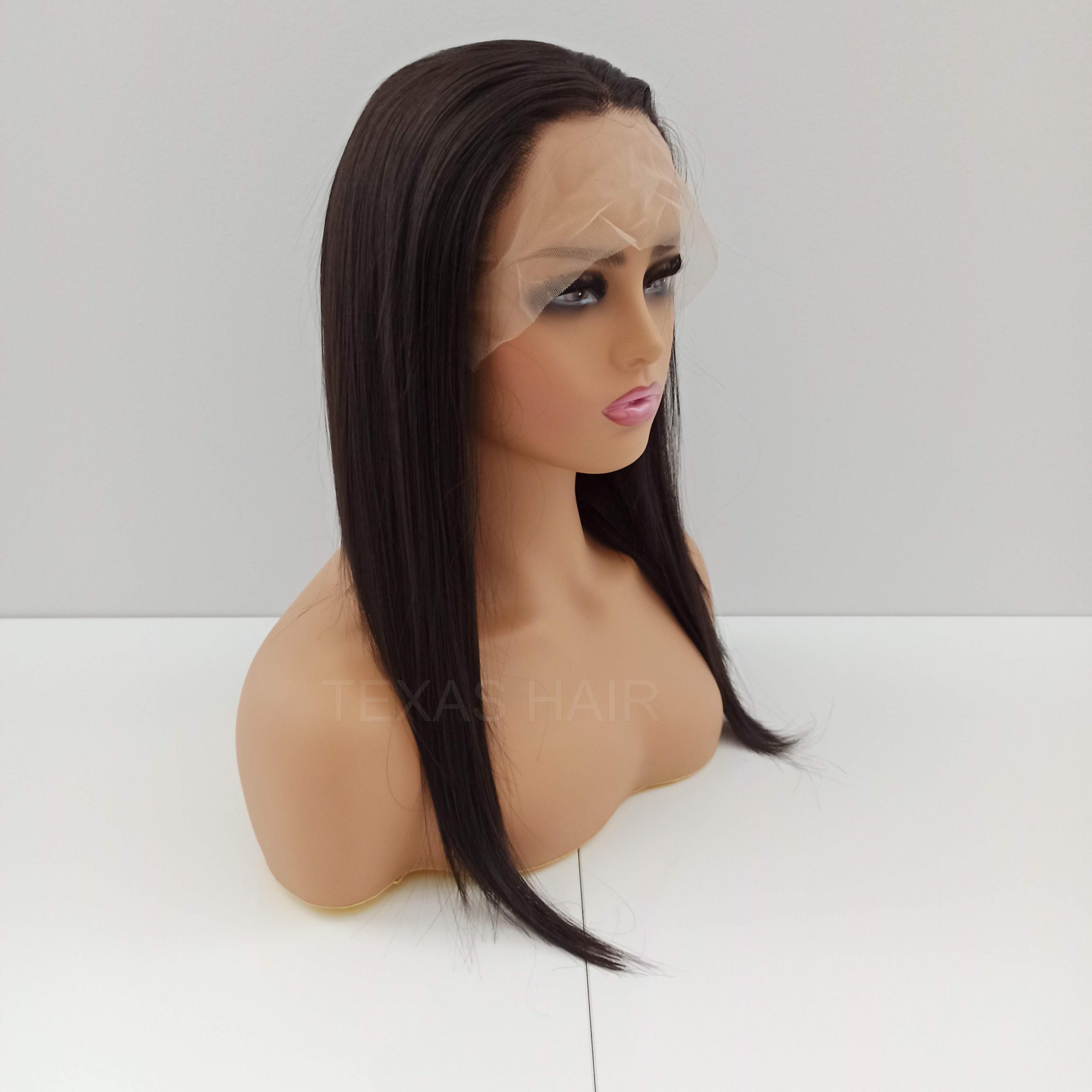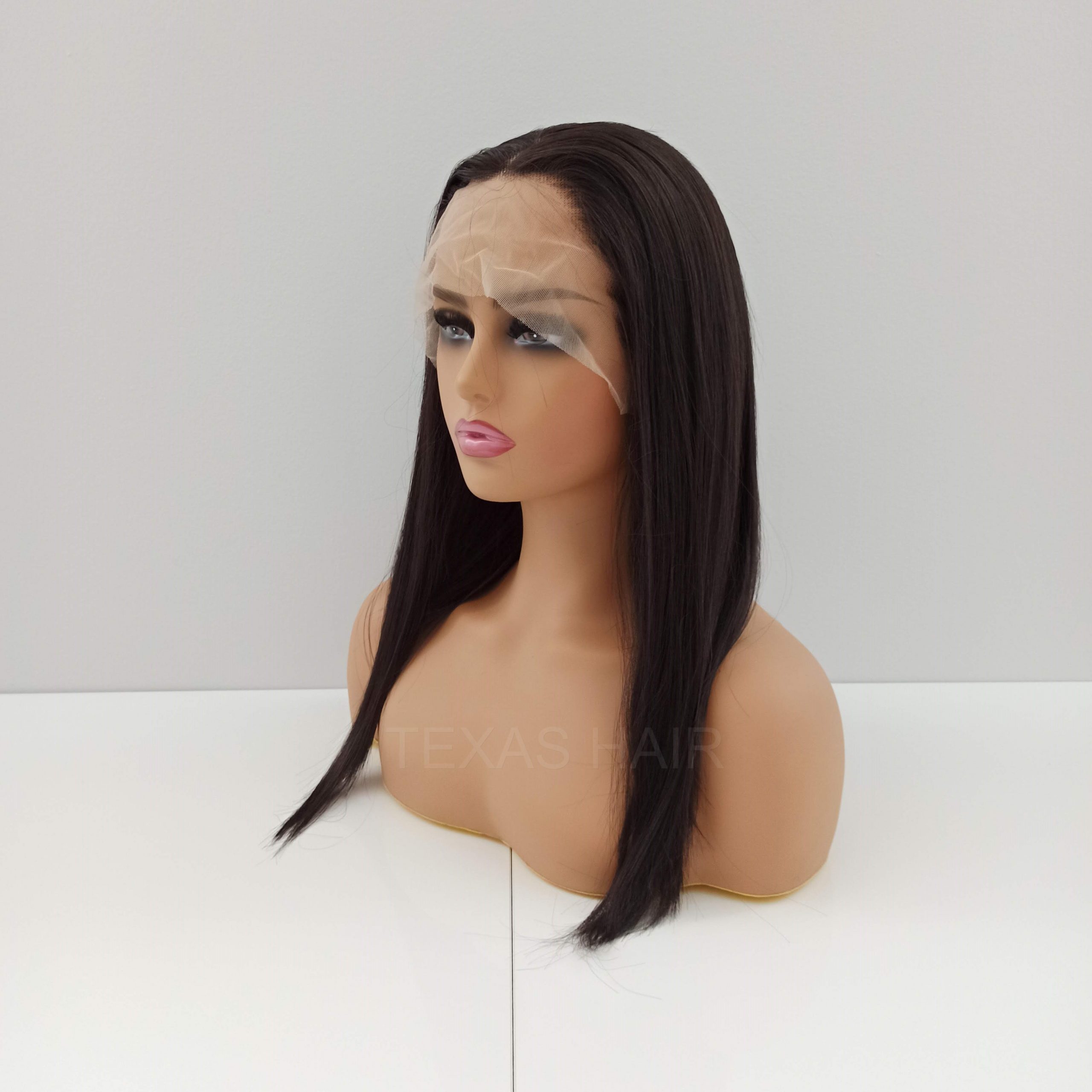 Peruka LACE FRONT imituje efekt „naturalnego czoła”. Posiada z przodu w delikatną, lekko elastyczną siateczkę (french lace) zlewającą się optycznie ze skórą. Przy samym brzegu utkane są małe, rzadsze włoski stopniowo przechodzące w gęstsze i dłuższe włosy. Technologia ta ma za zadanie oddać jak najbardziej realny wygląd samego brzegu peruki, umożliwiający odkrycie czoła.