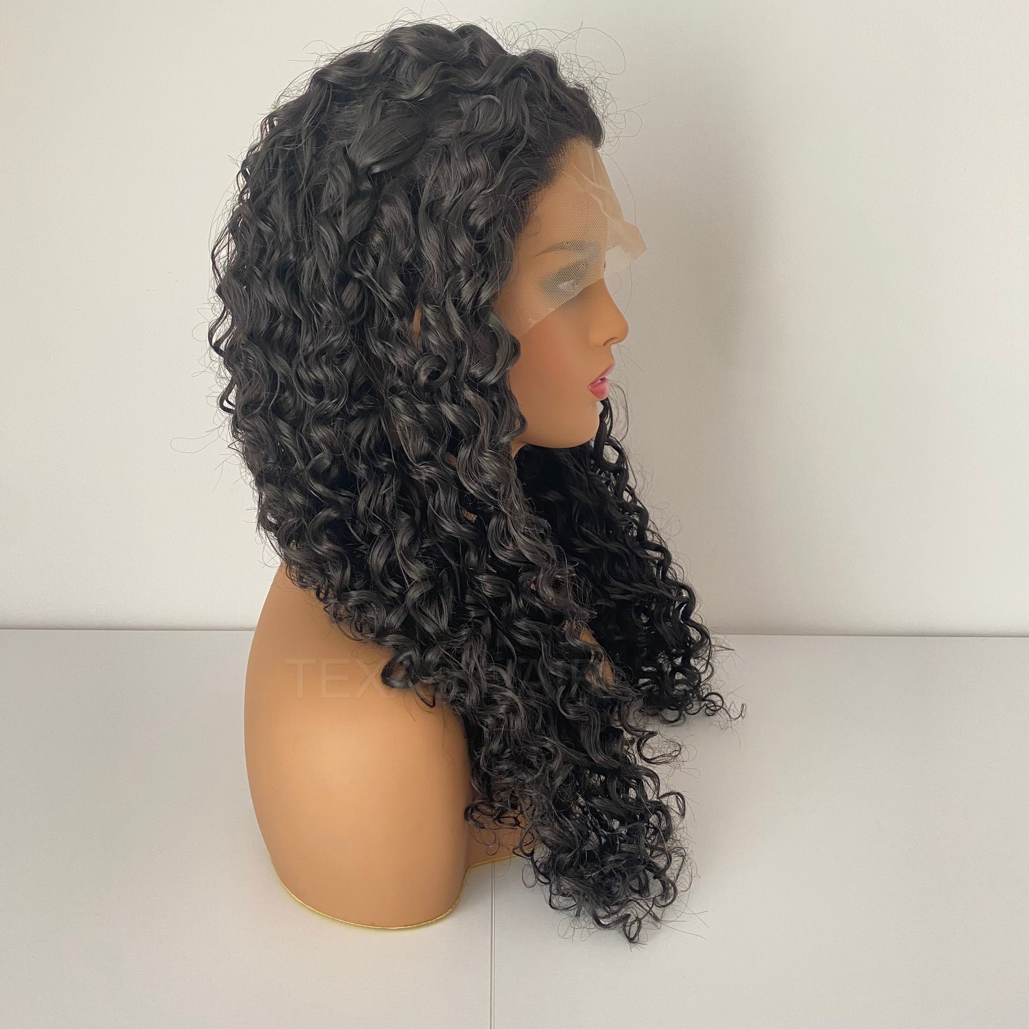 Peruka LACE FRONT imituje efekt „naturalnego czoła”. Posiada z przodu w delikatną, lekko elastyczną siateczkę (french lace) zlewającą się optycznie ze skórą. Przy samym brzegu utkane są małe, rzadsze włoski stopniowo przechodzące w gęstsze i dłuższe włosy. Technologia ta ma za zadanie oddać jak najbardziej realny wygląd samego brzegu peruki, umożliwiający odkrycie czoła.