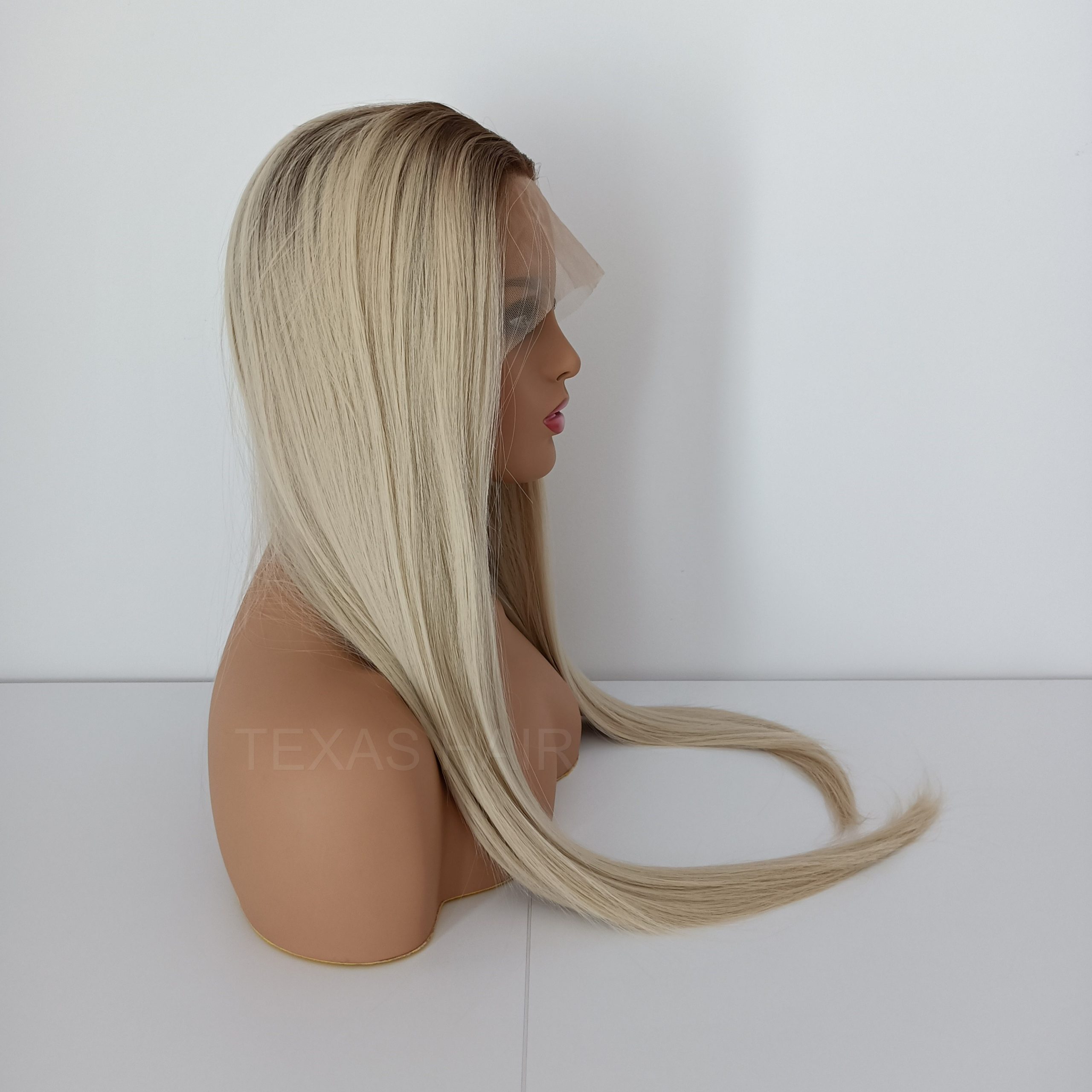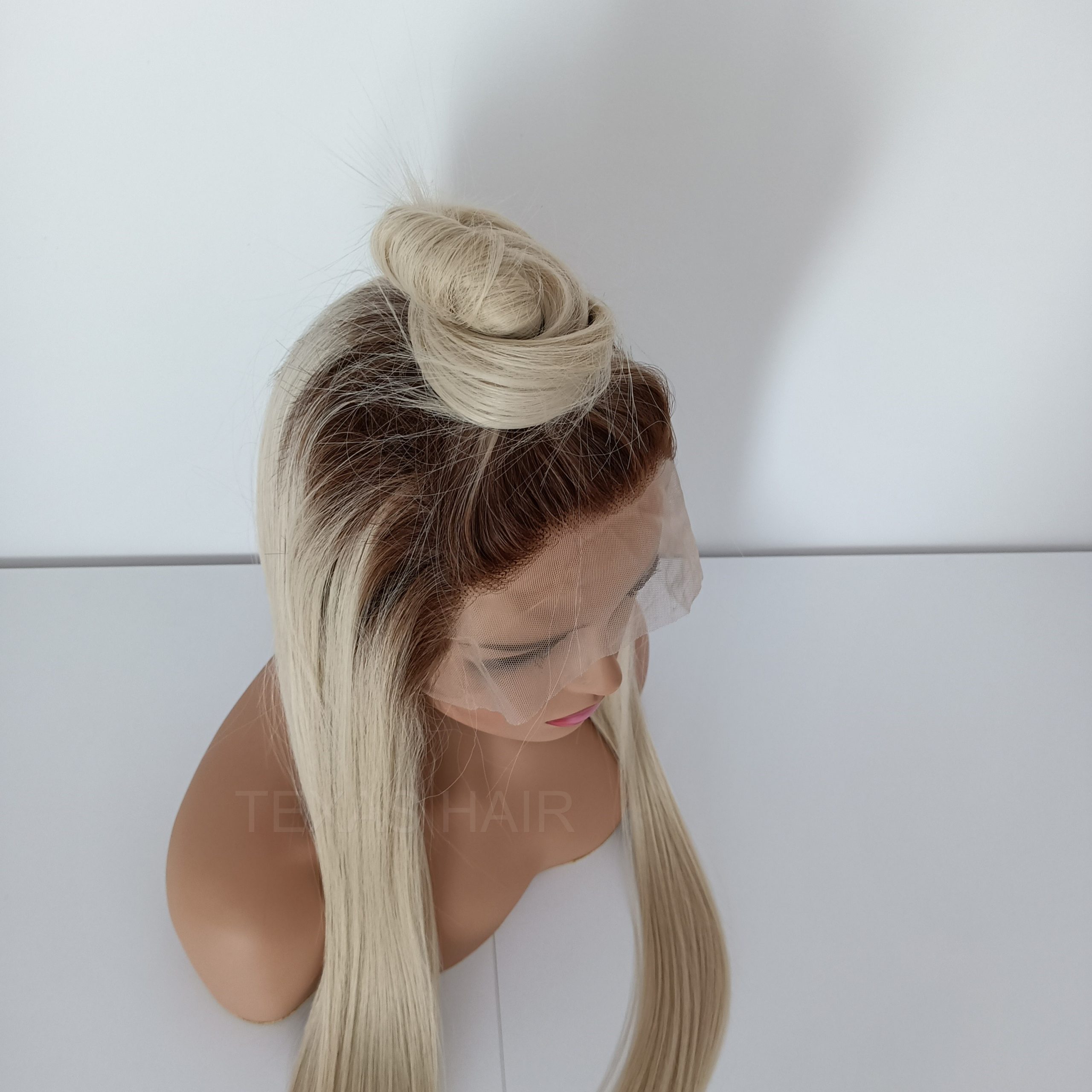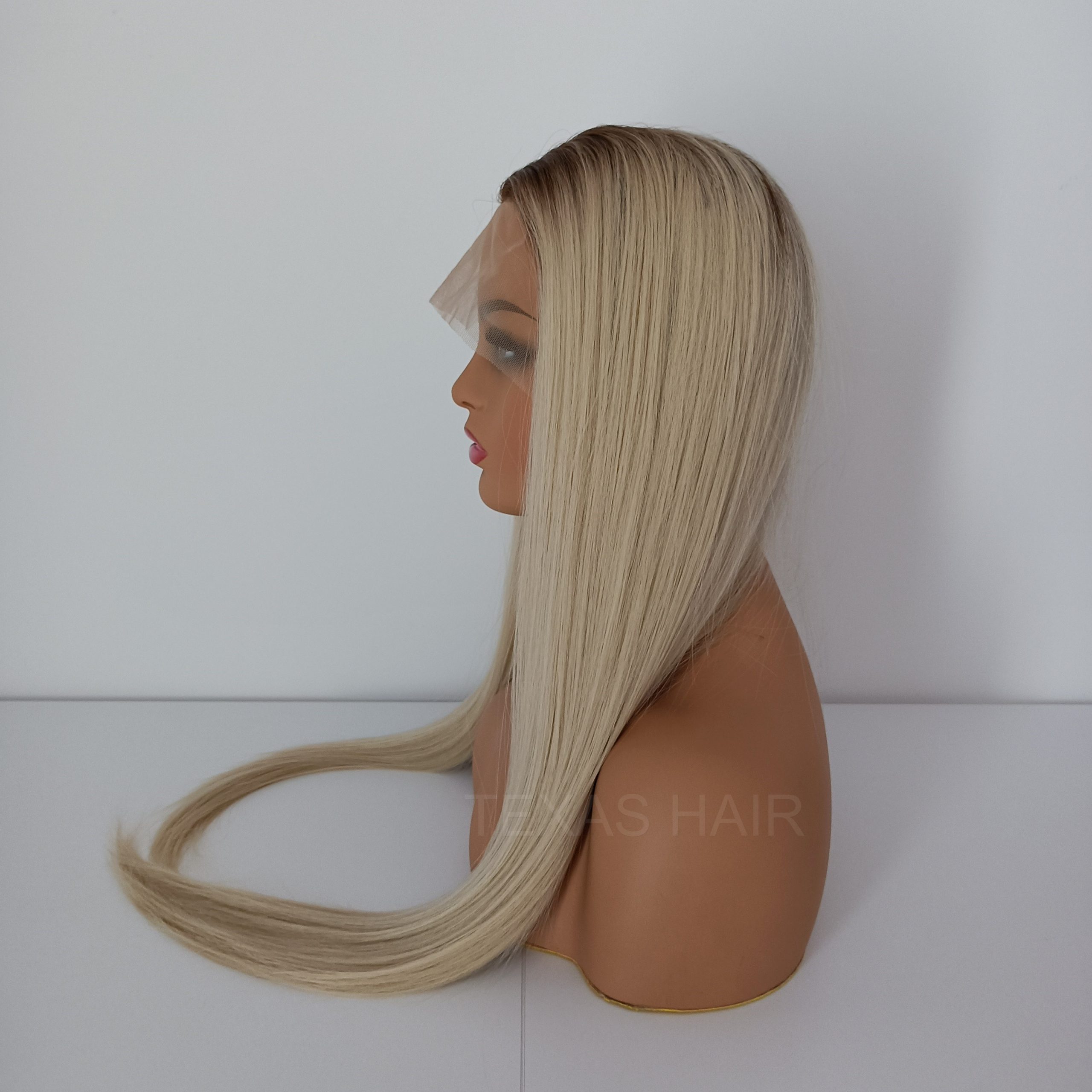 Peruka Lace Front w kolorze platynowego blond z odrostem jasny brąz