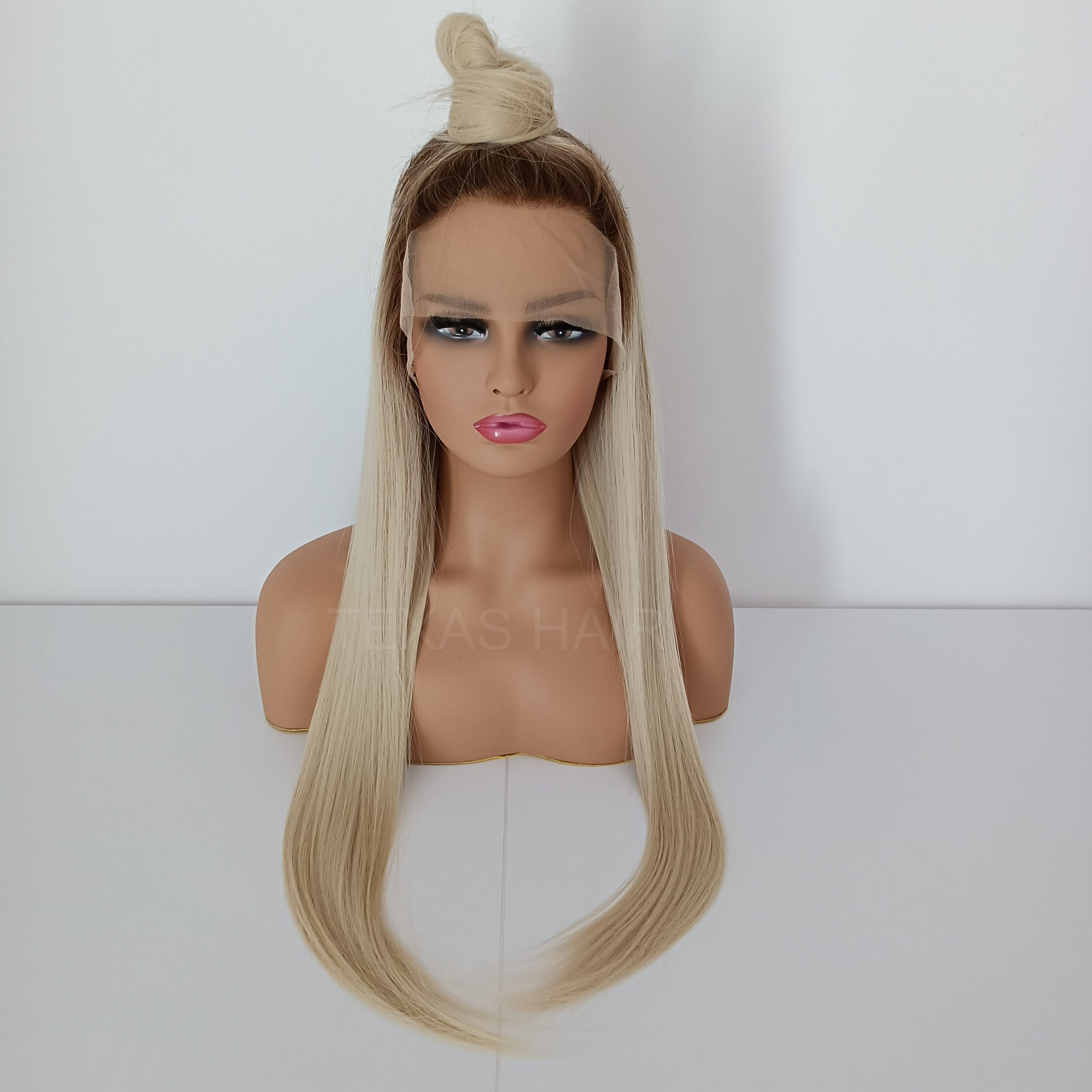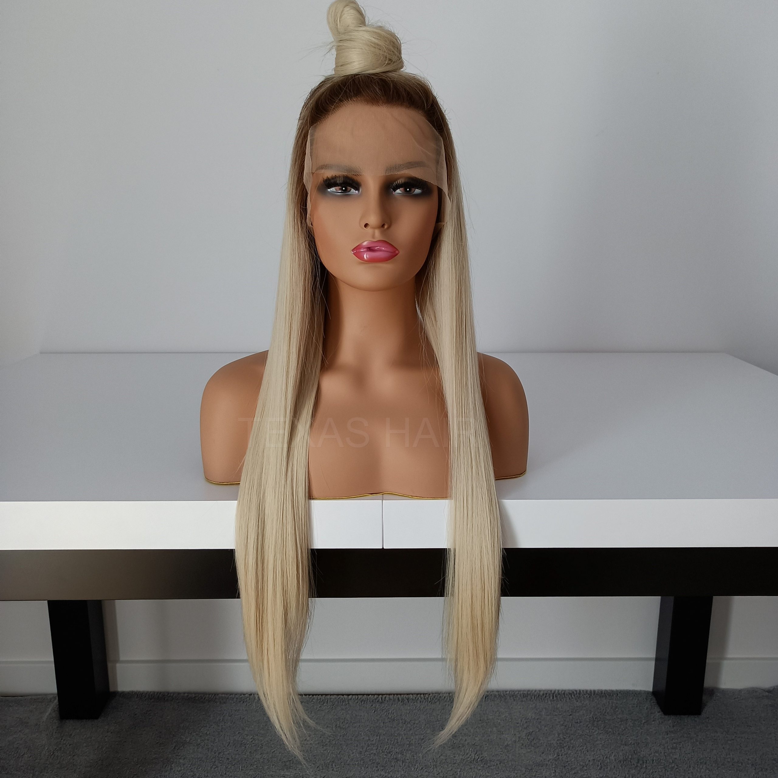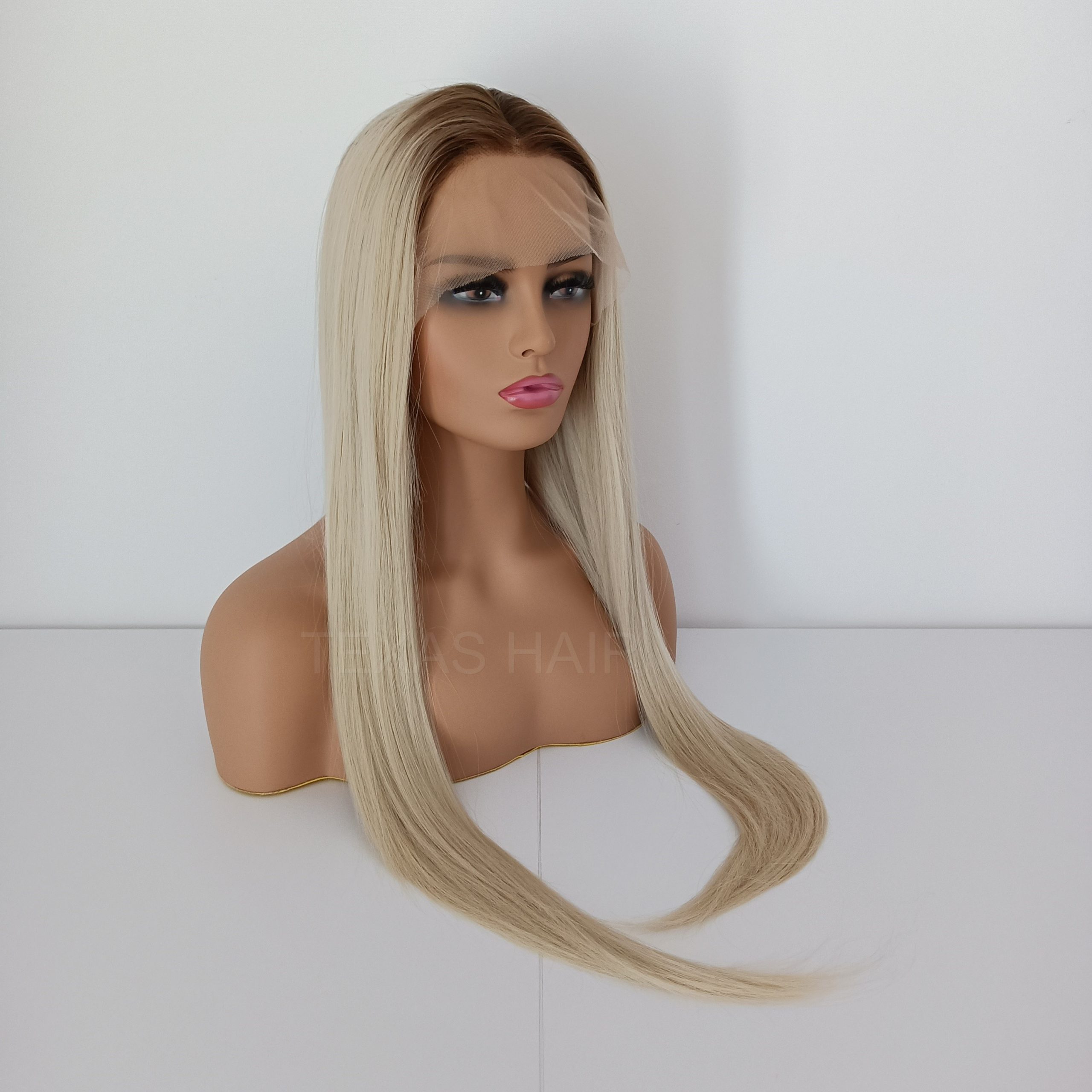 Peruka Lace Front w kolorze platynowego blond z odrostem jasny brąz