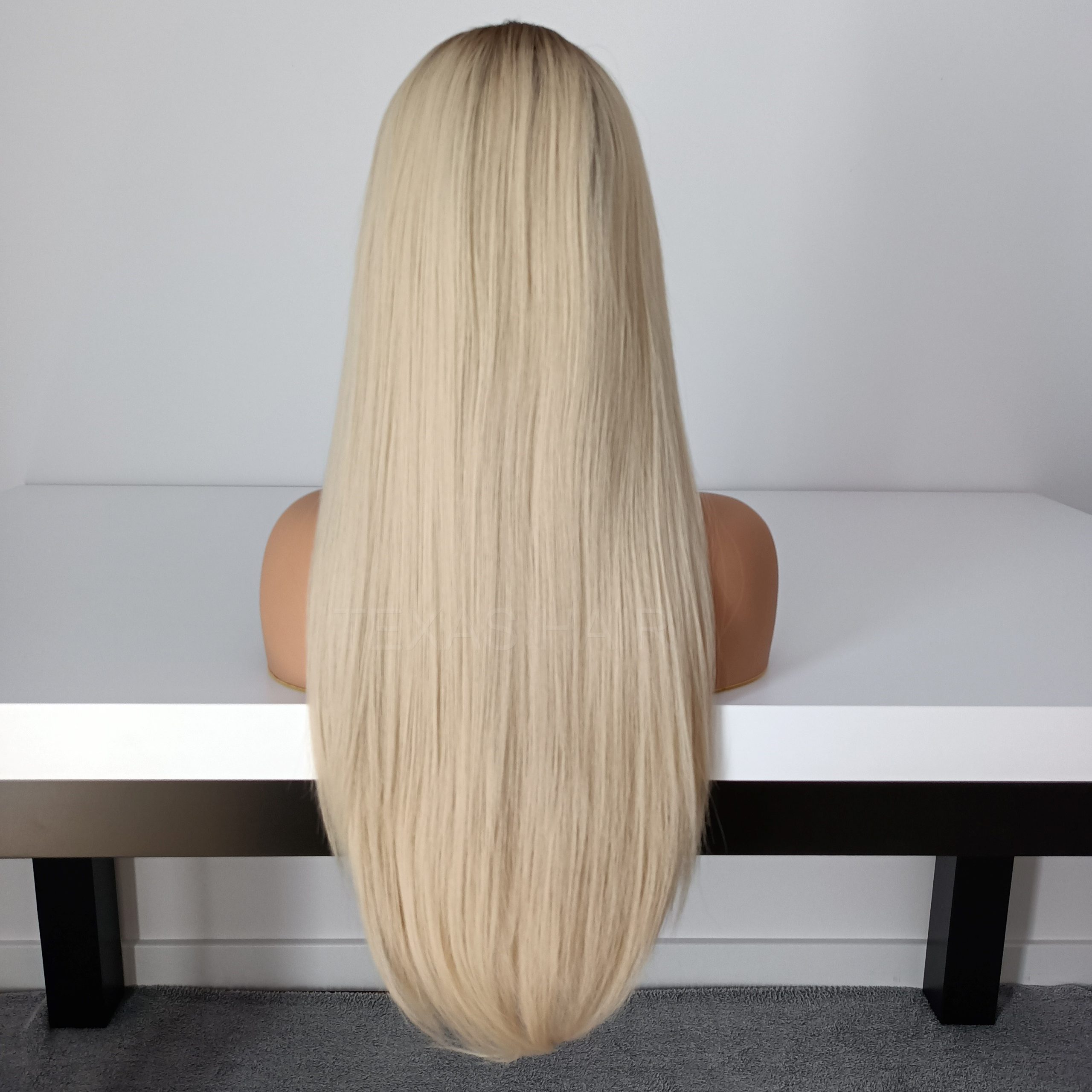 Piękna peruka w kolorze platynowego blond z odrostem jasny brąz jak naturalna!