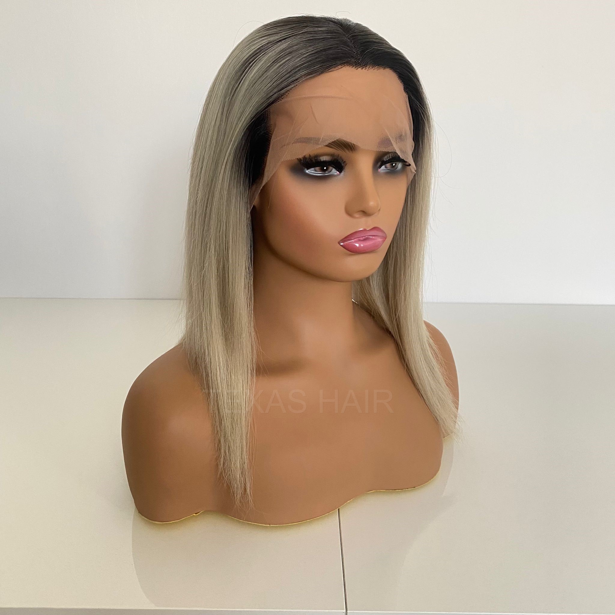 Piękna peruka w kolorze platynowego blond z ciemnym odrostem jak naturalna!