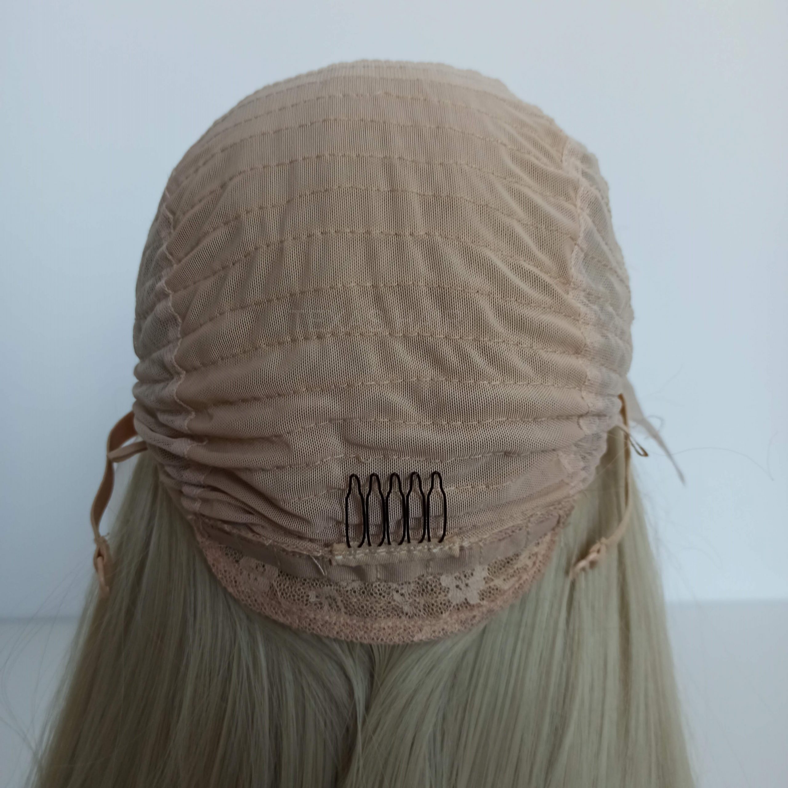 Wewnątrz peruki przymocowany jest pasek umożliwiający regulację obwodu, dzięki czemu peruka idealnie dopasowuje się do każdej głowy. Posiada również wsuwki umożliwiające spasowanie peruki z swoimi włosami.