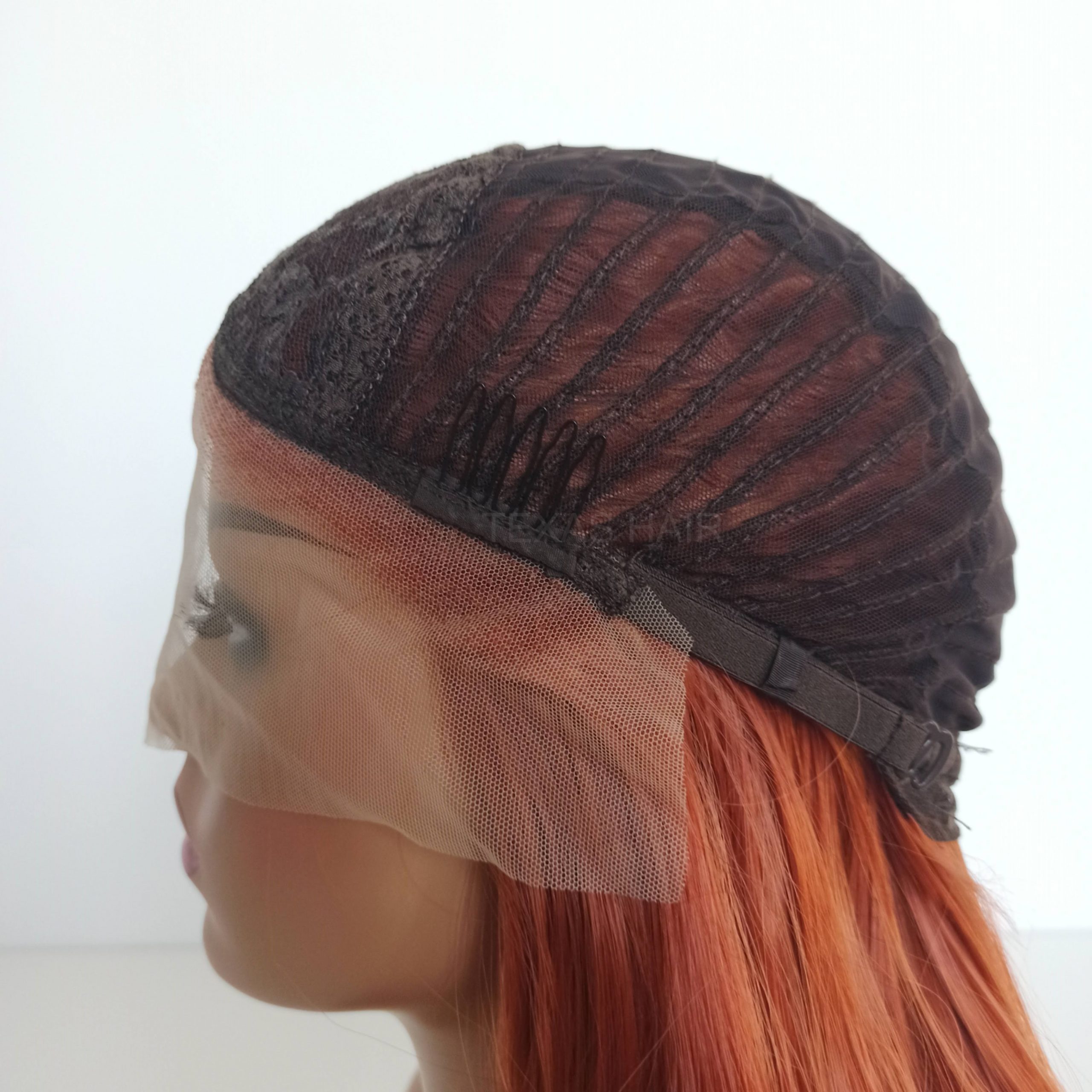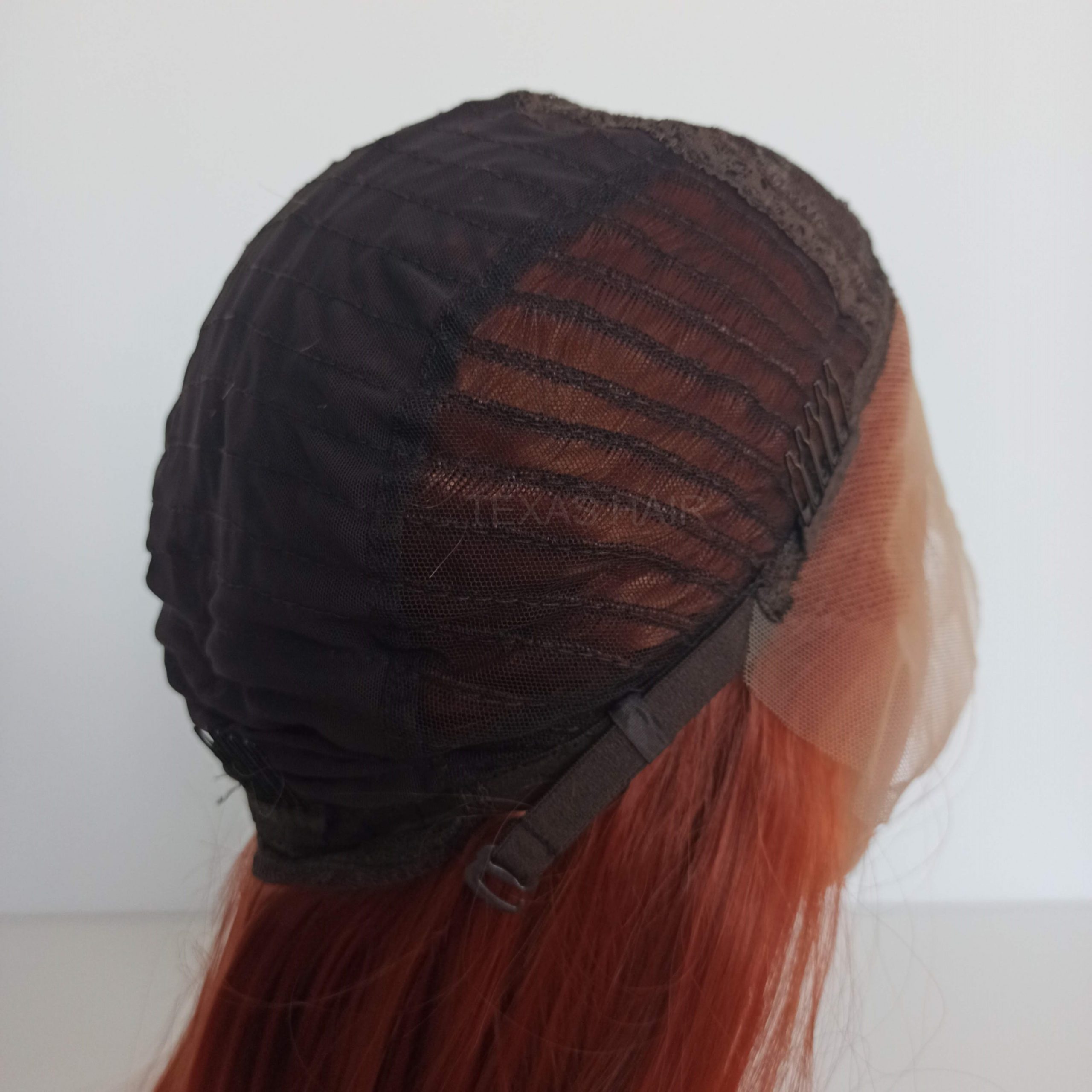 Wewnątrz peruki przymocowany jest pasek umożliwiający regulację obwodu, dzięki czemu peruka idealnie dopasowuje się do każdej głowy. Posiada również wsuwki umożliwiające spasowanie peruki z swoimi włosami.