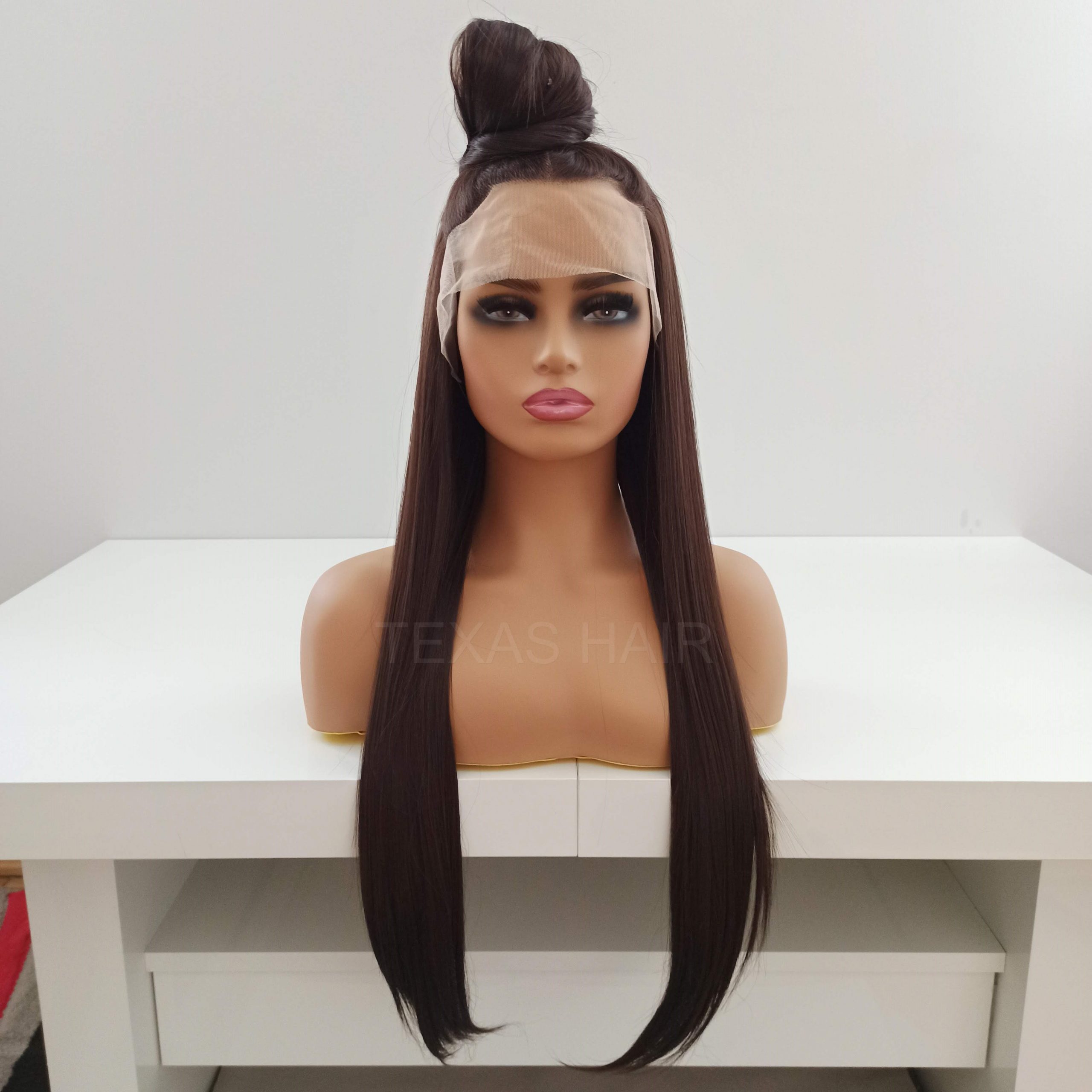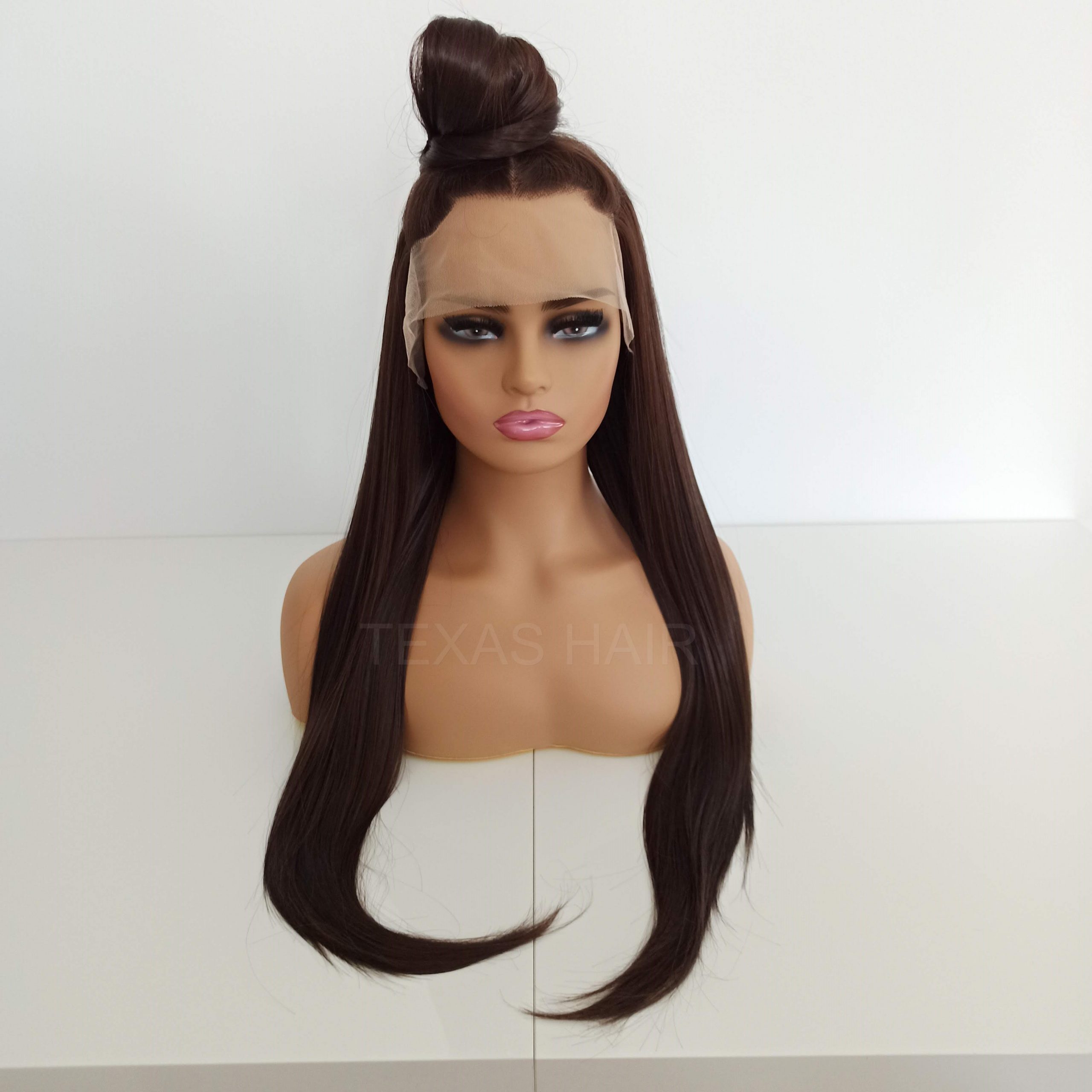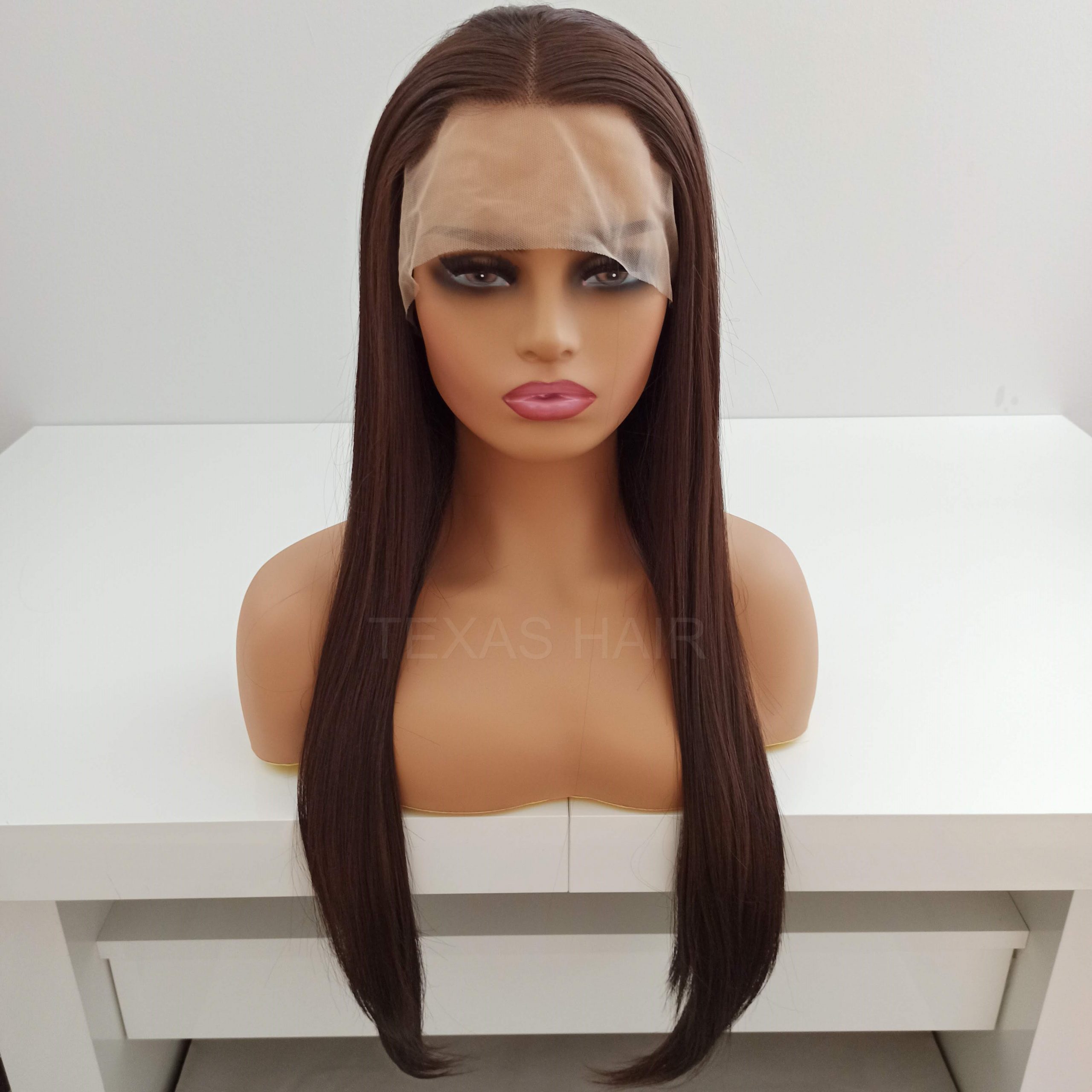 Peruka LACE FRONT imituje efekt „naturalnego czoła”. Posiada z przodu w delikatną, lekko elastyczną siateczkę (french lace) zlewającą się optycznie ze skórą. Przy samym brzegu utkane są małe, rzadsze włoski stopniowo przechodzące w gęstsze i dłuższe włosy. Technologia ta ma za zadanie oddać jak najbardziej realny wygląd samego brzegu peruki, umożliwiający odkrycie czoła.