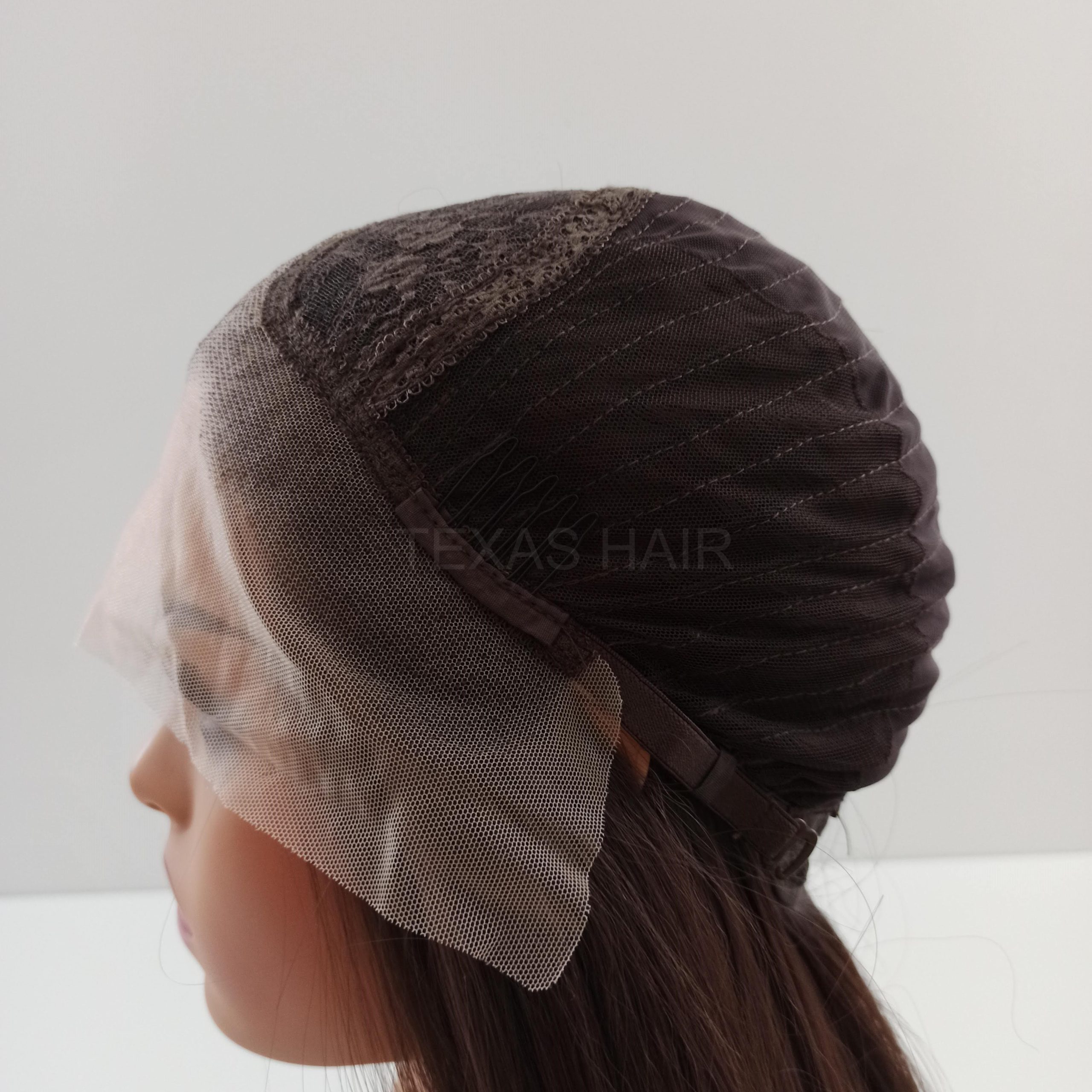 Wewnątrz peruki przymocowany jest pasek umożliwiający regulację obwodu, dzięki czemu peruka idealnie dopasowuje się do każdej głowy. Posiada również wsuwki umożliwiające spasowanie peruki z swoimi włosami.